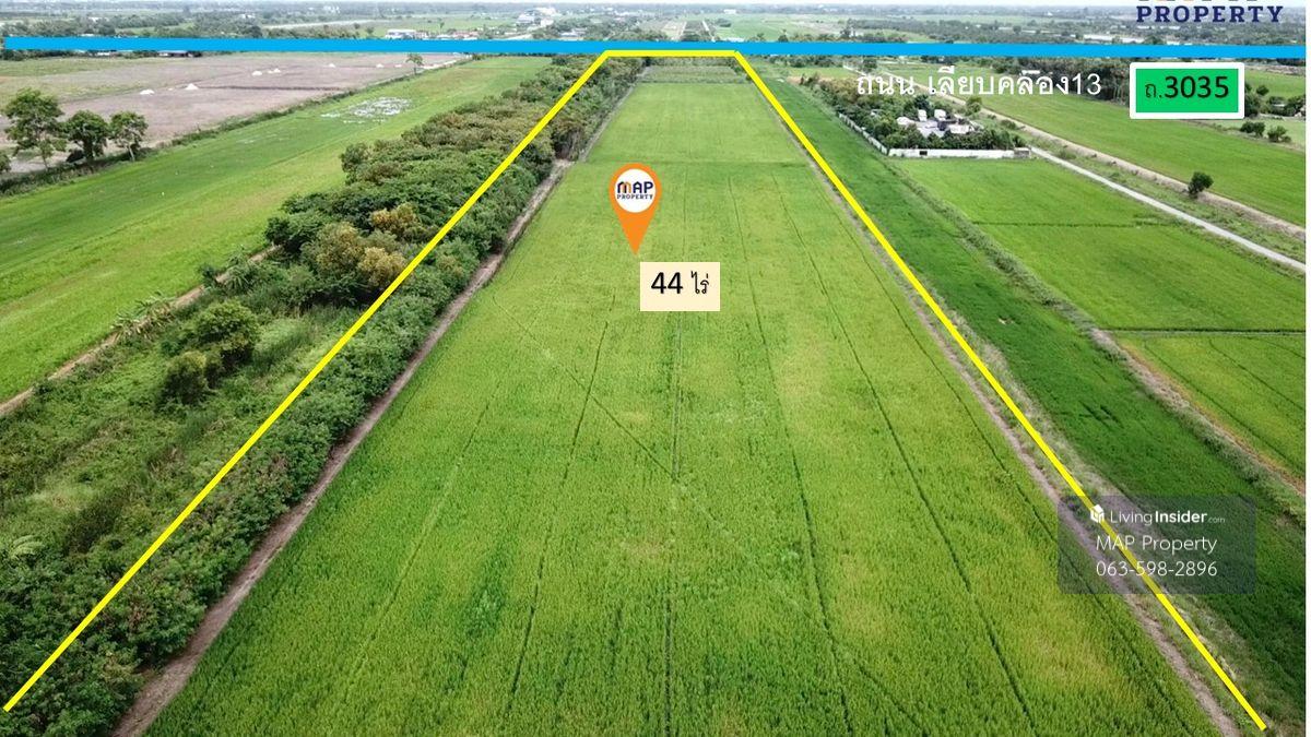 ขายที่ดินสวนเกษตรผสมผสาน 44 ไร่ ติดถนนเลียบ คลอง 13