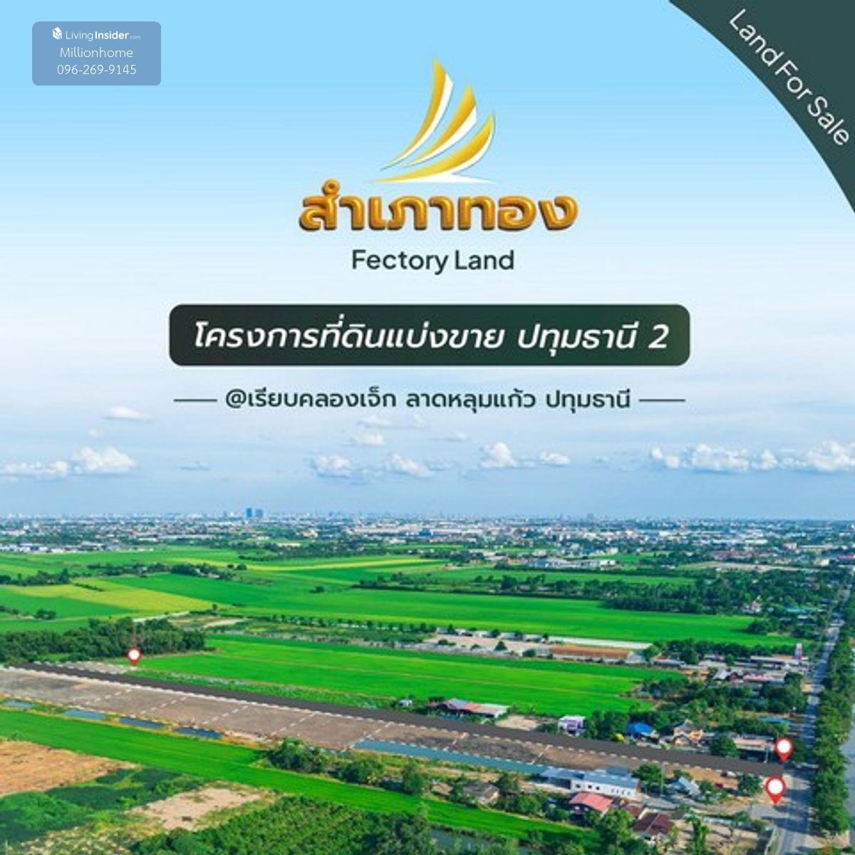 โครงการที่ดินแบ่งขาย ปทุมธานี 2 พิกัด : เลียบคลองเจ็ก ลาดหลุมแก้ว ปทุมธานี ที่ดินพร้อมสร้างโกดัง โรงงาน ที่ดินเขตติดต่อโซนบางใหญ่ บางบัวทอง จ.นนทบุรี - จุดศูนย์กลางการคมนาคมทางธุรกิจที่สำคัญ เหนือ ใต้ ออก ตก ใกล้ศูนย์การค้า รถไฟฟ้า มอเตอร์เวย์ เดินทางสะดวกสะบาย พิกัด : เลียบคลองเจ็ก ลาดหลุมแก้ว ปทุมธานี การพัฒนาโครงการ - ปรับปรุงหน้าดิน ถมอัด เตรียมพื้นที่สำหรับปลูกสร้าง - ไฟฟ้า ขนาด 3 เฟส รองรับโกดัง โรงงาน - น้ำใช้ภายในที่ดิน - วางท่อระบายน้ำตลอดโครงการ - ถนนคอนกรีตตัดผ่านหน้าแปลงขนาดกว้างกว่า 10 เมตร เส้นทางคมนาคมขนส่ง - ที่ดินตั้งอยู่โซนเดียวกับ คลัง 7-11 , โลตัส , Tops บางบัวทอง - มีเส้นทางการเดินทางที่สำคัญทางหลวงหมายเลข 9 ถ.รัตนาธิเบศร์ - ถนน.บางบัวทอง-สุพรรณ 340 - ถนน บางคูวัด ราชพฤกษ์ ชัยพฤกษ์ บ้านกล้วย-ไทรน้อย ดูแลครบจบที่สำเภาทอง - จัดสินเชื่อ - งานก่อสร้าง - งานรากฐาน - งานออกแบบ - ดำเนินการขออนุญาตขั้นพื้นฐาน ------------------------------------------ ราคาเริ่มต้น 12,000 ต่อตารางวา ที่ดินเริ่มต้น 200 ตารางวา สอบถามรายละเอียดเพิ่มเติมหรือนัดเข้าชมโครงการ Tel : คลิกเพื่อดูเบอร์โทรติดต่อ คุณเปิ้ล Line: https://line.me/ti/p/yvirpKVUKZ (MH0183)