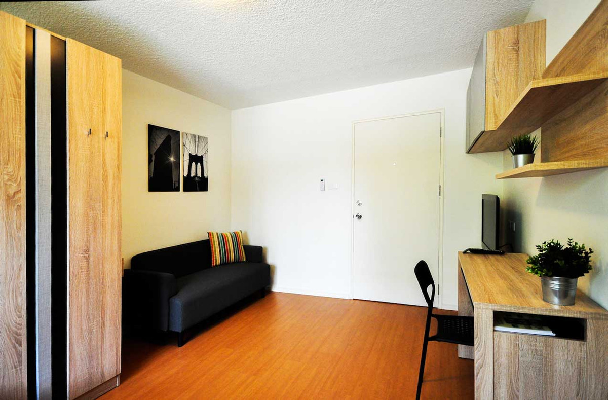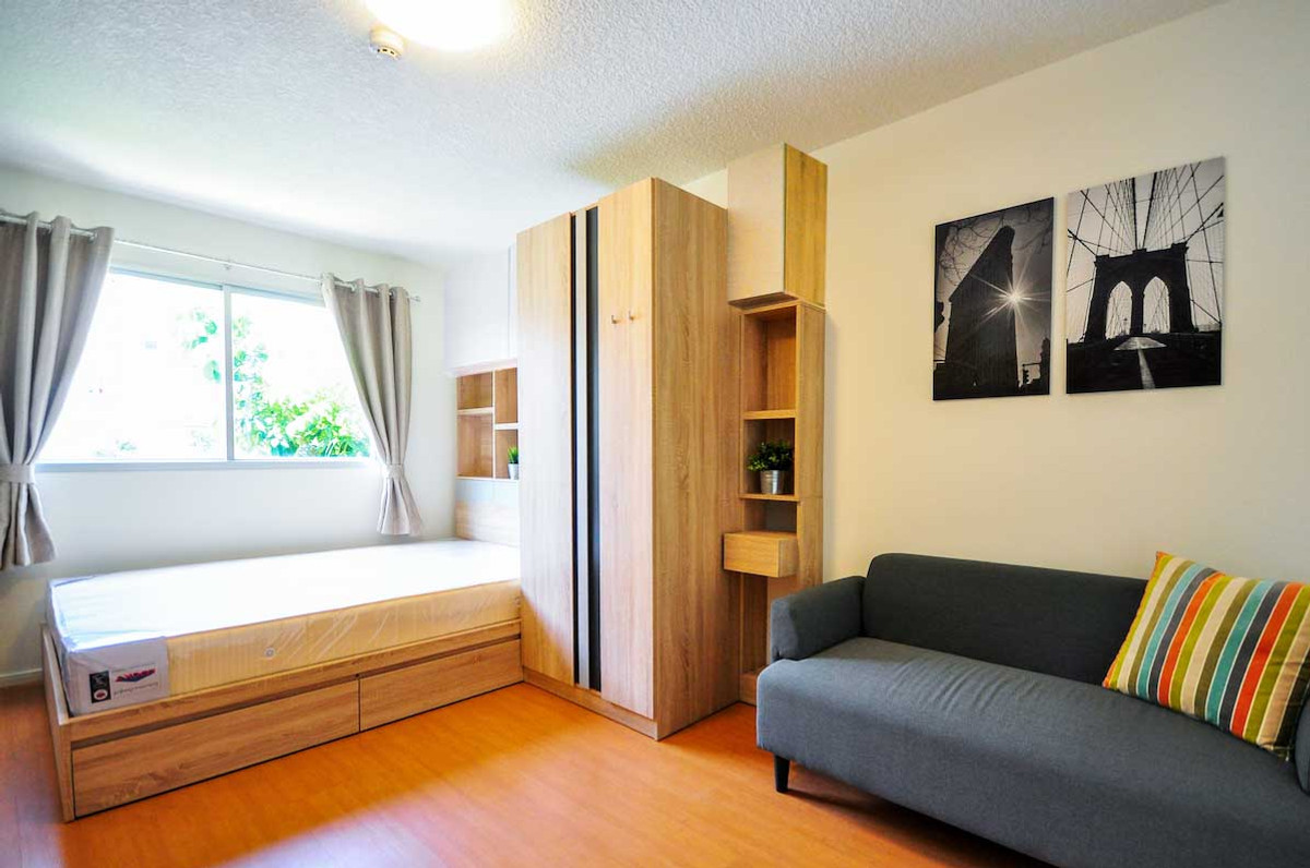 ให้เช่า คอนโด ลุมพินี ร่มเกล้า เฟอร์ฯ และเครื่องใช้ไฟฟ้าครบ พร้อมอยู่ ตึก A3 ชั้น 2 ขนาด 22 ตารางเมตร ตกแต่งสวย ค่าเช่า 6,500 บาท/เดือน เฟอร์นิเจอร์ : เตียงนอน 5 ฟุต + ที่นอน, ตู้เสื้อผ้า, โต๊ะแต่งตัว, โต๊ะทำงาน, ชั้นวาง TV, โซฟา เครื่องใช้ไฟฟ้า : แอร์ 13,000 BTU Inverter, เครื่องทำน้ำอุ่น, ตู้เย็น, LCD TV, ไมโครเวฟ สิ่งอำนวยความสะดวกภายในโครงการ - ร้านค้า 7-Eleven, ร้านอาหาร, ร้านซักรีด - ฟิตเนส - ห้องสมุด - เครื่องซักผ้า เครื่องอบผ้าหยอดเหรียญ - ระบบ CCTV / Key Card Access - อาคารจอดรถ 7 ชั้น - รถตู้ รับส่ง สนามบินสุวรรณภูมิ สถานที่ใกล้เคียงที่สำคัญ 1 กม. Airport-link สถานีลาดกระบัง, 1 กม. โรงเรียนสารสาสน์ ร่มเกล้า 3.5 กม. The Paseo ลาดกระบัง 4 กม. สนามบินสุวรรณภูมิ 5 กม.เทคโนฯลาดกระบัง **สัญญาเช่า 1 ปี เงินประกัน 2 เดือน ค่าเช่าล่วงหน้า 1 เดือน สนใจติดต่อ อาร์ม คลิกเพื่อดูเบอร์โทรติดต่อ Line ID : armareewan