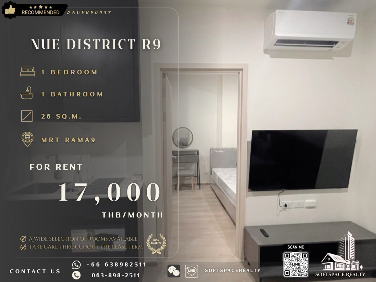 Nue District R9 🏙ïļ ðŸšˆ MRT Rama9 🛏 1 Bedroom 🛁 1 Bathroom 📐 Size: 26 sq.m. 🗞 Tower N 📍 23 Floor ðŸ’ļ Rental Price: 17,000 THB/month â€Ē Minimum 1 year contract â€Ē 1-month rent in advance + 2-month security de