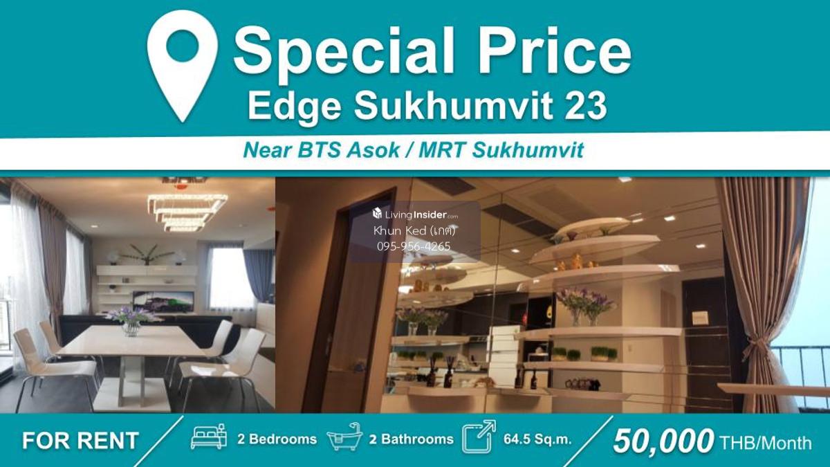 โครงการทำเลดี ทำเลดี อยู่ในย่านสุขุมวิท ใกล้ BTS อโศก และ MRT สุขุมวิท เดินทางสะดวกสบาย สิ่งอำนวยความสะดวกภายในโครงการครบครัน Edge Sukhumvit 23 ㅡ 2 ห้องนอน 2 ห้องน้ำ ㅡ พื้นที่ 64.5 ตรม. เฟอร์นิเจอร์+เ