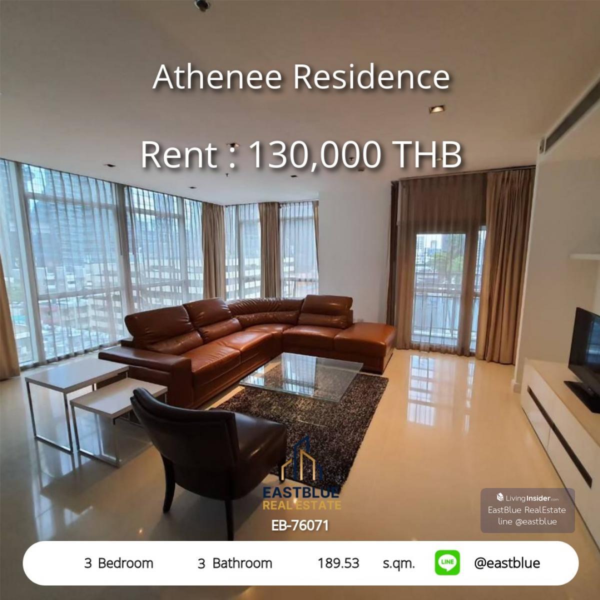 Project : Athenee Residence ID : EB-76071 3 Bed 3 Baht Size :189.53 sqm Rental Price : 130,000 THB per month BTS / MRT :Phloen Chit - minimum contract 6 month - 1 year - Contact, Appointment for viewi