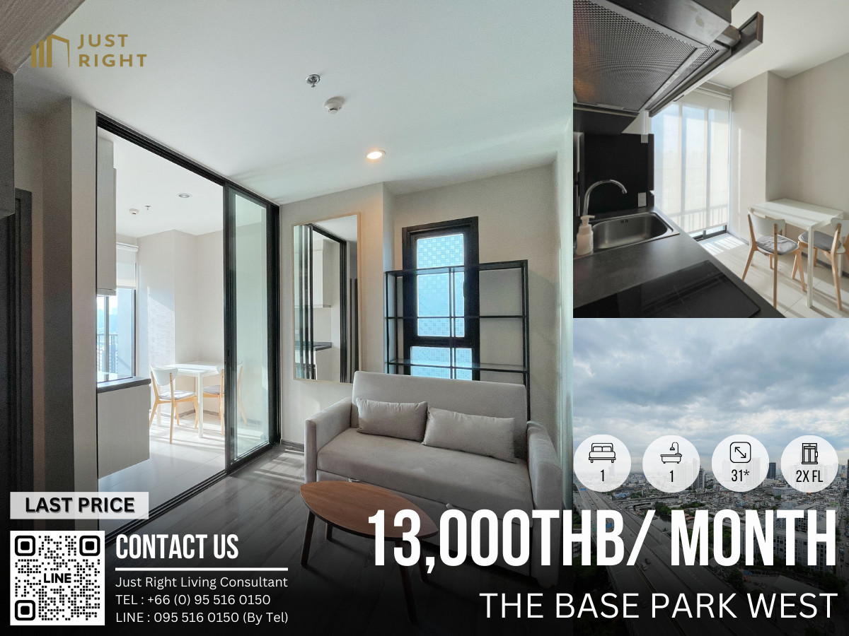 ให้เช่า The Base Park West 1 ห้องนอน 1 ห้องน้ำ 31*ตร.ม. ชั้น 2x ตกแต่งสวย เฟอร์ครบ วิวสวย ลดพิเศษจาก 16,000 คงเหลือเพียง 13,000 บาท/เดือน สัญญา 1 ปีเท่านัั้น