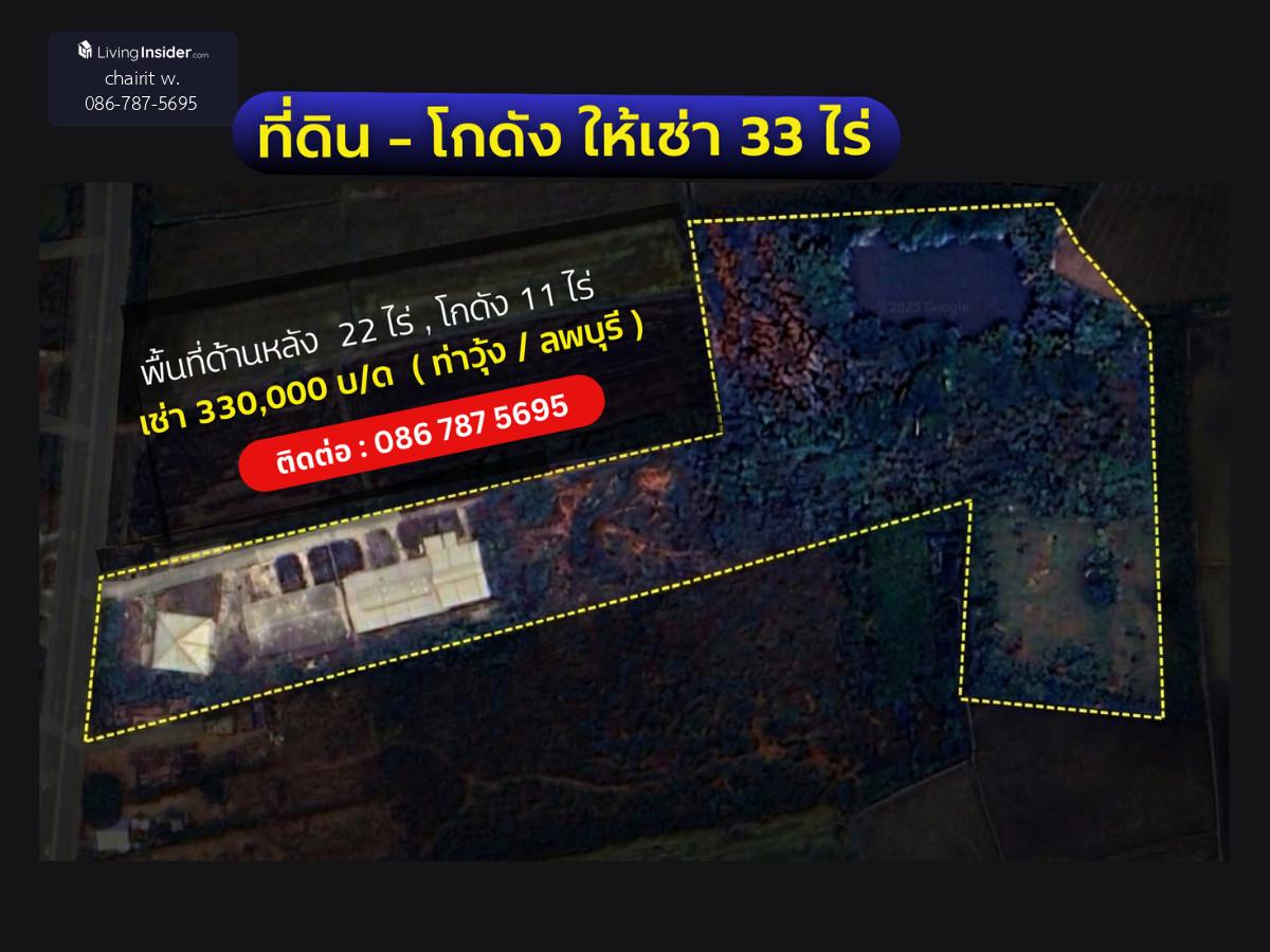 ที่ดิน ให้เช่า พร้อมโกดัง ลพบุรี ท่าวุ้ง 33 ไร่ ติดถนนใหญ่