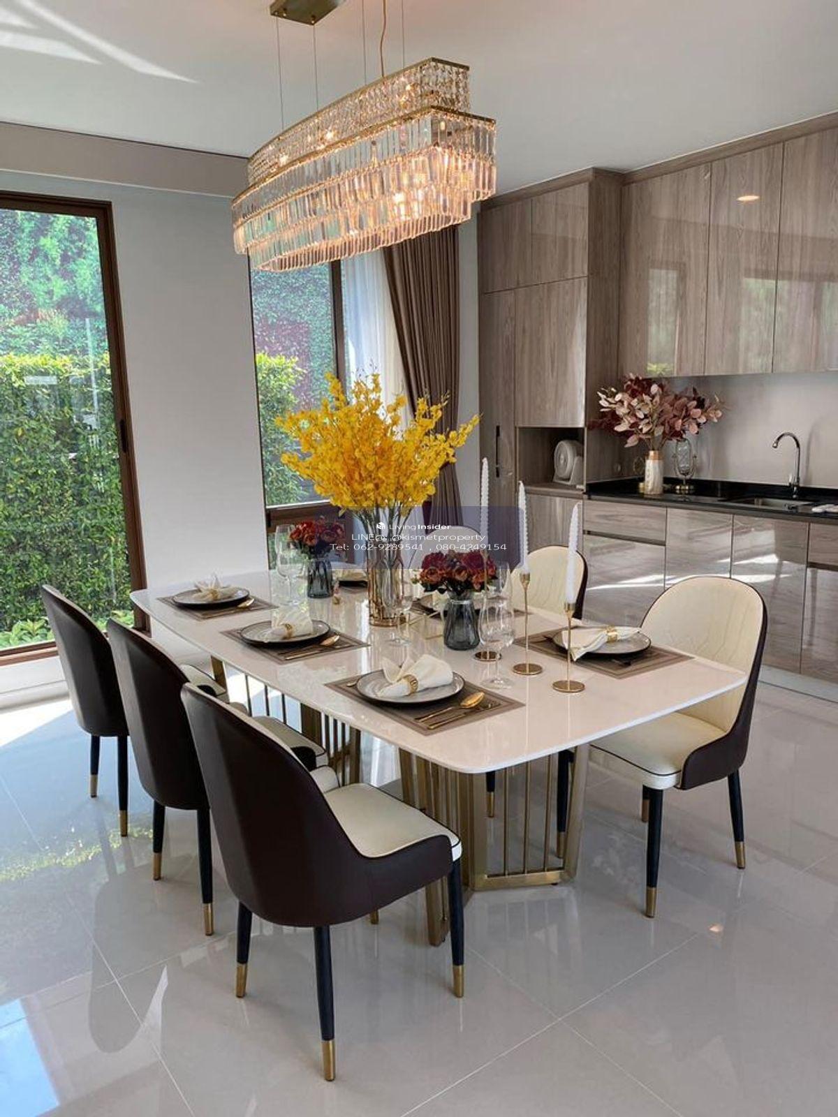 Burasiri Krungthep Kreetha 4 bedrooms 5 bathrooms Size 77.3 sq wa/ 300 sq m. 2 Storey Fully furnished 3 car parking Rent 220,000/month (1 Year contract) Available for rent on 25/09/2025 บุราสิริ กรุงเ