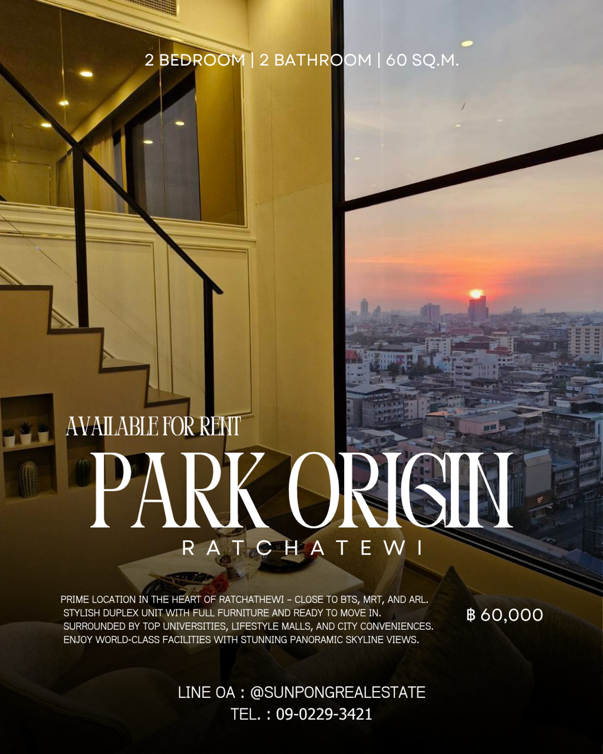 🌟 [OWNER POST] āđ€āļˆāđ‰āļēāļ‚āļ­āļ‡āļ›āļĨāđˆāļ­āļĒ â€“ Agent āļ—āļąāļāļ”āđˆāļ§āļ™! 🌟 ðŸšĻ āļŦāđ‰āļ­āļ‡āđ€āļ”āļĩāļĒāļ§āđƒāļ™āđ‚āļ„āļĢāļ‡āļāļēāļĢ! āļžāļĨāļēāļ”āđāļĨāđ‰āļ§āļˆāļ°āđ€āļŠāļĩāļĒāļ”āļēāļĒ! ðŸ”Ĩ Rare Unit! Duplex 2 āļŠāļąāđ‰āļ™ āļ§āļīāļ§āļ”āļĩ āļŠāļąāđ‰āļ™āļŠāļđāļ‡ āļāļĨāļēāļ‡āđ€āļĄāļ·āļ­āļ‡āļˆāļĢāļīāļ‡! ðŸ”Ĩ . âœĻ āļĢāļēāļĒāļĨāļ°āđ€āļ­āļĩāļĒāļ”āļŦāđ‰āļ­āļ‡ ðŸ™ïļ Park Origin Ratchathewi | āļ„āļ­āļ™āđ‚āļ” Hi-Rise Luxury 📍 āđƒāļāļĨāđ‰ BTS āļĢāļēāļŠāđ€āļ—āļ§āļĩ / MRT āļŦāļąāļ§āļĨāļģāđ‚āļžāļ‡ / ARL āļžāļāļēāđ„āļ— ðŸĒ āļŠāļąāđ‰āļ™ 19 | Duplex 2 āļŠāļąāđ‰āļ™ ðŸ“ 60 āļ•āļĢ.āļĄ. (āļĢāļ§āļĄāļŠāļąāđ‰āļ™ 2 āđāļĨāļ°āļĢāļ°āđ€āļšāļĩāļĒāļ‡) 🛏ïļ 2Bed 🛁 2Bath 💰 60,000B / Month . 🛋ïļ āđ€āļŸāļ­āļĢāđŒāļ„āļĢāļš: āļ—āļĩāļ§āļĩāļˆāļ­āđƒāļŦāļāđˆ / āļ•āļđāđ‰āđ€āļĒāđ‡āļ™ / āđ€āļ„āļĢāļ·āđˆāļ­āļ‡āļ‹āļąāļ-āļ­āļšāļœāđ‰āļēðŸ§ģ āļžāļĢāđ‰āļ­āļĄāđ€āļ‚āđ‰āļēāļ­āļĒāļđāđˆāļ—āļąāļ™āļ—āļĩ 🏊‍♀ïļ Facilities āđ‚āļ„āļĢāļ‡āļāļēāļĢāļˆāļąāļ”āđ€āļ•āđ‡āļĄ (āļŠāļąāđ‰āļ™ 39-40) ⭐ STARRY LOUNGE / SKY THEATER / SPA / WINE BAR 💊 PANORAMIC SKY FITNESS / YOGA / SKY POOL / LAVA ONSEN ðŸŽĨ ENDLESS POOL / SUNSET AMPHITHEATER / VIRTUAL BIKE . ðŸšĻ āļĄāļĩāļŦāđ‰āļ­āļ‡āđ€āļ”āļĩāļĒāļ§! Duplex āđāļšāļšāļ™āļĩāđ‰āđ„āļĄāđˆāļĄāļĩāļ›āļĨāđˆāļ­āļĒāđƒāļ™āļ•āļĨāļēāļ”āļ­āļĩāļāđāļĨāđ‰āļ§ ðŸ“Œ āļĢāļēāļ„āļēāļ™āļĩāđ‰āļŦāļēāđ„āļĄāđˆāđ„āļ”āđ‰āļ­āļĩāļ! āļĢāļĩāļšāļ„āļ§āđ‰āļēāđ„āļ§āđ‰āļāđˆāļ­āļ™āļ–āļđāļāļ›āļēāļ”! 📑āļŠāļąāļāļāļēāđ€āļŠāđˆāļē 1 āļ›āļĩ āļĢāļąāļšāļ„āđˆāļēāļ„āļ­āļĄ 1 āđ€āļ”āļ·āļ­āļ™āđ€āļ•āđ‡āļĄ ðŸ“…āđ€āļ‚āđ‰āļēāļŠāļĄāđ„āļ”āđ‰āļ—āļąāļ™āļ—āļĩ – āļ—āļąāļāļ”āđˆāļ§āļ™āļāđˆāļ­āļ™āļŦāđ‰āļ­āļ‡āļŦāļĨāļļāļ” ðŸš€Agent āļ—āļąāļāļ”āđˆāļ§āļ™! āļˆāļ­āļ‡āļāđˆāļ­āļ™āļĄāļĩāļŠāļīāļ—āļ˜āļīāđŒāļāđˆāļ­āļ™ ðŸ“žāļ•āļīāļ”āļ•āđˆāļ­āđ€āļ‚āđ‰āļēāļŠāļĄ: āļ„āļĨāļīāļāđ€āļžāļ·āđˆāļ­āļ”āļđāđ€āļšāļ­āļĢāđŒāđ‚āļ—āļĢāļ•āļīāļ”āļ•āđˆāļ­ / āļ„āļĨāļīāļāđ€āļžāļ·āđˆāļ­āļ”āļđāđ€āļšāļ­āļĢāđŒāđ‚āļ—āļĢāļ•āļīāļ”āļ•āđˆāļ­(āđāļ™āđ‡āļ„) LINE: @sunpongrealestate