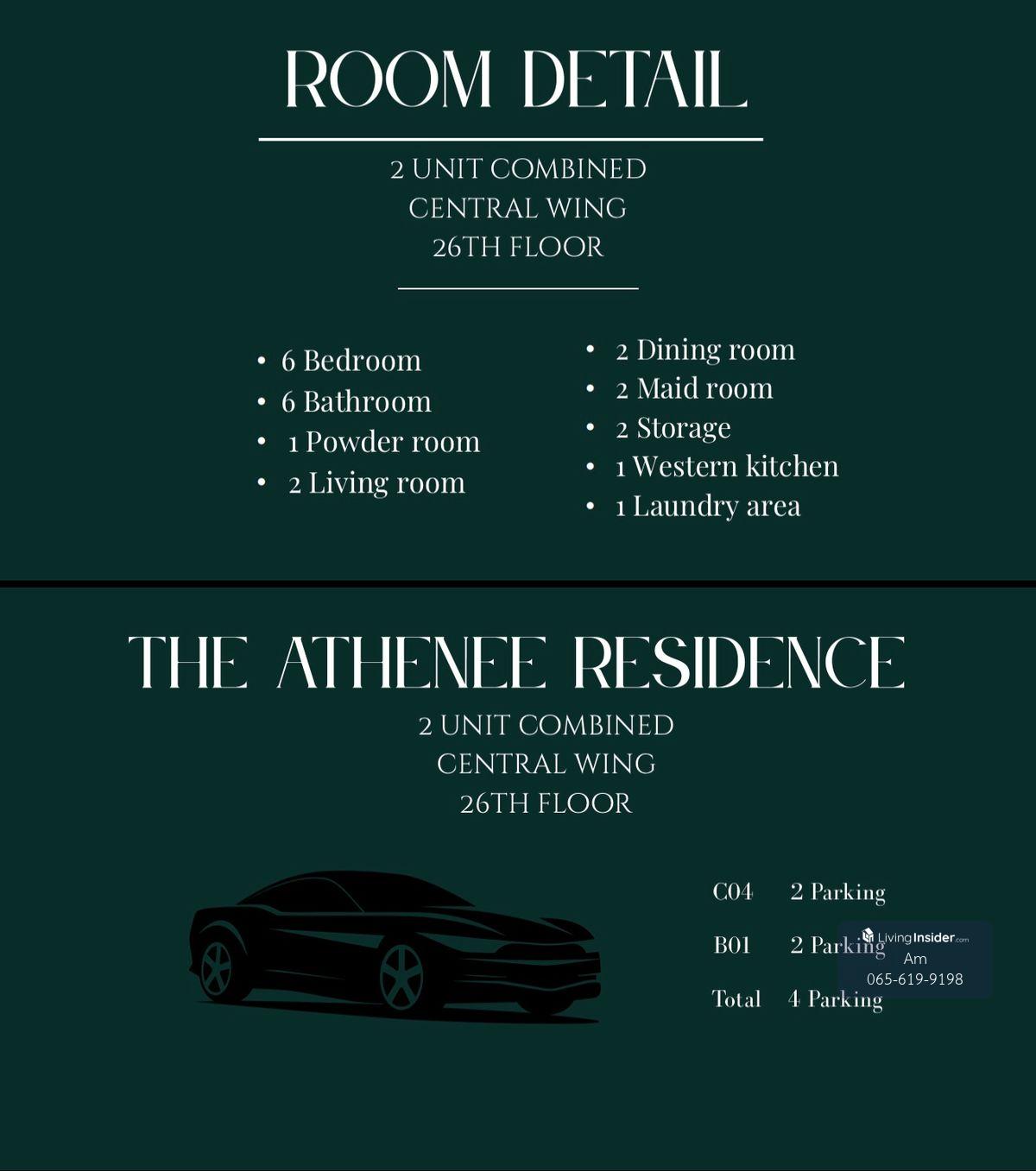 Athenee Residence Combine units Sell/Rent: 387.57sqm (Combine Unit C4 209.43sqm + Unit B1 178.14sqm.) 2X Fl Panoramic Wireless and Sukhumvit Road view - 6bed 6bath 1 powder room - 2 Spacious Living Rooms & 2 Dining Rooms - Western Kitchen - 2 Maid Rooms & 2 Storage Rooms - 4 Fixed Parking 150 meter from BTS Ploenchit/Central Embassy 👍🏻 Sell: 120,000,000 transfer fee 50/50 Rent: 290,000/mth min 1 yr contract Call/Line: Am คลิกเพื่อดูเบอร์โทรติดต่อ https://line.me/ti/p/_MXfrDHcUp Whatsapp/Wechat: คลิกเพื่อดูเบอร์โทรติดต่อ #atheneeresidence #atheneeresidenceforsell #atheneeresidenceforrent #condoforsellploenchit #condoforrentploenchit #condoforsellwirelessroad #condoforrentwirelessroad #luxurycondo #6bedluxurycondo #luxurycondosukhumvit #luxurycondo300sqm. #propertytown