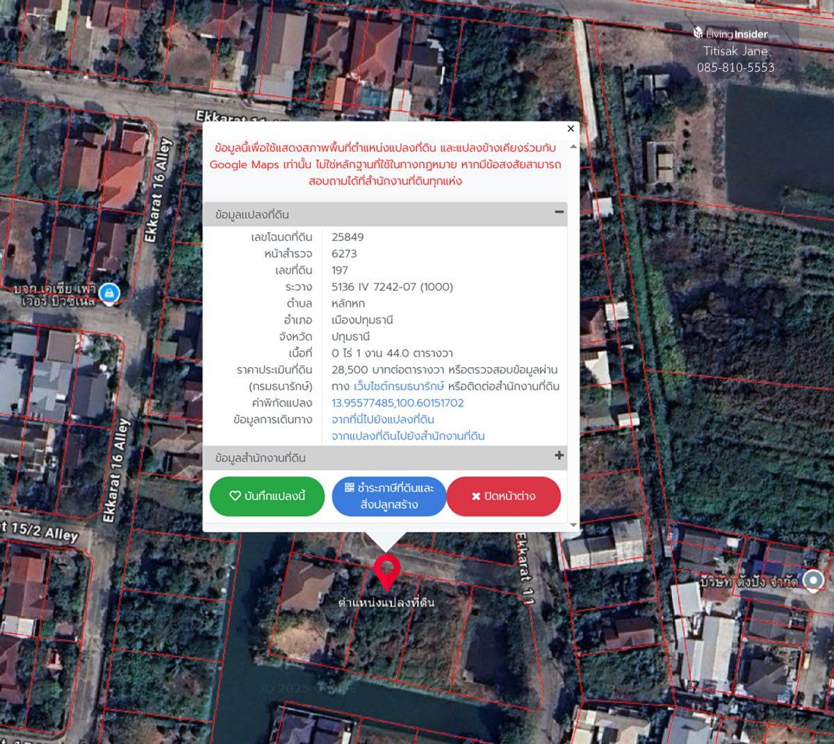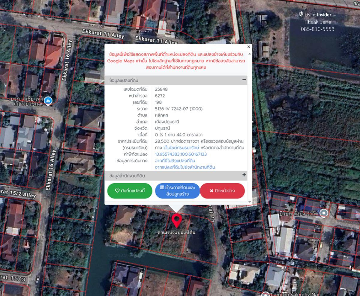 ขายที่ดิน แปลงสวย หลังติดน้ำ ขนาด 144 ตรว. มี 2 แปลงติดกัน หมู่บ้านเมืองเอก ม.รังสิต โครงการ 3 ซอยเอกรัตน์ 11 ราคาดีที่สุดในโครงการ ขายเพียง 3.2 ล้านต่อแปลงเท่านั้น (22,222 บาทต่อตรว.) ขายต่ำกว่าราคาประเมินเยอะมากๆ ราคาประเมินราชการ 28,000 บาท/ตรว. 22,222 บาทต่อตรว. ***รายละเอียดที่ดิน*** +ที่ดินมี 2 แปลง ติดกัน สี่เหลี่ยมผืนผ้า ขนาด 144 ตรว. เท่ากัน ขายแยก และขายรวมทั้ง 2 แปลงก็ได้ +ขายแปลงละ 3,200,000 บาท หรือ 22,222 บาทต่อตรว. ราคาดีที่สุดกับทำเลดีสุดๆ บรรยากาศดีมาก สงบเงียบ +ขายต่ำกว่าราคาประเมินเยอะมากๆ ราคาประเมิน 28,000 บาทต่อตรว. +ขนาดที่ดินต่อแปลง หน้ากว้างประมาณ 16.5 ลึกประมาณ 35 เมตร ขนาดกำลังสวยเลยครับ +ด้านหน้าติดถนนหมู่บ้าน ด้านหลังติดน้ำทั้ง 2 แปลง ทำเลดีมากๆ เป็นโซนที่ราคาแพงมาก แต่ขายถูกมากที่สุด +ที่ดินหันหน้าทิศตะวันออกเฉียงเหนือ +ระดับที่ดินเสมอถนนโครงการ ไม่ต้องถม ดินแน่นมาก หรือจะถมเพิ่มทีหลังก็ได้ครับ +เหมาะสร้างบ้าน สร้างออฟฟิต โลเคชั่น ที่ตั้งที่ดิน : https://maps.app.goo.gl/r615enH6KPwWYsS38 ***การเดินทางสะดวกสบาย เข้า-ออกได้หลายเส้นทาง เช่น ถ.พหลโยธิน,ถ.สรงประภา,ถ.วิภาวดีรังสิต,ถ.ซ่อมสร้าง ***สถานที่ใกล้เคียง : - ตลาดสัมมากร - ตลาดรังสิต - ตลาดสี่มุมเมือง - ม.รังสิต - ม.กรุงเทพ - ตลาดไท - สถานีรถไฟฟ้ารังสิต-สายสีแดง - แม็คโคร - สนามบินดอนเมือง - ฟิวเจอร์พาร์ครังสิต - รพ.แพทย์รังสิต - รพ.วิภาวดี - รพ.เปาโล - ห้างเชียร์รังสิต ขาย หมู่บ้านเมืองเอกโครงการ 3 ถนนพหลโยธิน ปทุมธานี สนใจติดต่อ ผมเจน นายหน้าอสังหาริมทรัพย์มืออาชีพ คลิกเพื่อดูเบอร์โทรติดต่อ