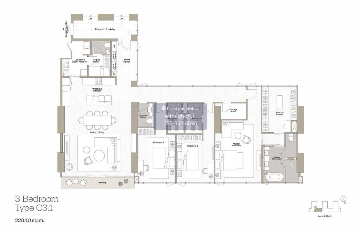 Prime Bangkok Park View | 228 Sq.m. 3BR High Floor | 98MB | 0984628898