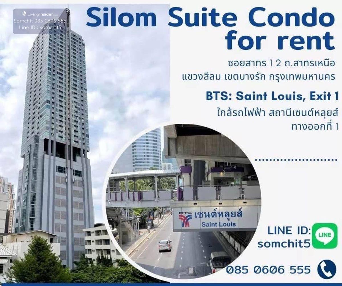 เช่า ห้องคอนโด สีลม สวีท (สาทร 12) ห้อง สตูดิโอ 1 ห้องน้ำ พื้นที่ 41 ตรม เฟอร์นิเจอร์พร้อมอยู่ วิวเมือง ราคาเช่า 17,000 บาท สัญญา 1 ปี สีลมสวีทคอนโด อยู่ห่างจากสถานี BTS เซนต์หลุยส์แค่ 1 นาที บริเวณนี้ มีโรงเรียนที่มีชื่อเสียงหลายแห่ง มีโรงพยาบาลเก่าแก่ และ ทันสมัยหลายแห่ง ใกล้ศูนย์การค้ามากมาย ร้านอาหารหลากหลาย สะดวกสบายสำหรับผู้พักอาศัย มีห้องกว้างขนาดใหญ่พร้อมเฟอร์นิเจอร์ในราคาไม่แพง ก่อนตัดสินใจ สามารถเข้ามาชมห้องชุดของเราได้ แล้วจะไม่ผิดหวัง สนใจติดต่อ คุณสมจิต คลิกเพื่อดูเบอร์โทรติดต่อ Line ID : somchit5 Email : คลิกเพื่อดูอีเมล Silom Suite Room for Rent (Sathorn 12) Studio Room, 1 Bath area size 41 sqm. Fully Furnish Great View of Bangkok Rent Price 17,000THB (Start 1 Year) Amenity: Silom Suite Condo close to BTS Saint Louis Station for 1 min There are many famous schools and universities nearby and the famous hospitals also Many supermarket department store and banks nearby Very convenient for living here. Nice facilities, Swimming Pool, Gym and Sauna Can call to make an appointment for room survey before taking decision. Interested call Miss Somchit คลิกเพื่อดูเบอร์โทรติดต่อ Line ID : somchit5 Email : คลิกเพื่อดูอีเมล