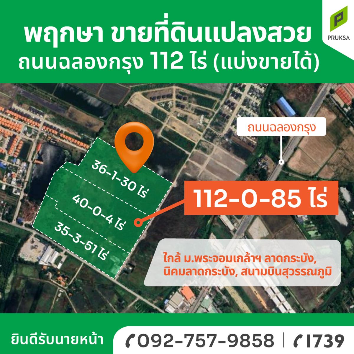ขายที่ดินเปล่า 7-2-75 ไร่, 112-0-85.3 ไร่ ถ.ฉลองกรุง แปลงติดถ.ฉลองกรุง ด้านนอก 7-2-75 ไร่ ขายเหมา 57,693,150 บาท (ไร่ละ 7,504,800 บาท) แปลงติดถ.ฉลองกรุง ด้านใน 112-0-85.3 ไร่ ขายเหมา 520,310,398 บาท (ไร่ละ 4,636,830 บาท) – ที่ดินหน้ากว้างติดถนน 60 ม. – 1.4 กม. จาก ถ.สุวินทวงศ์ – 5.5 กม. จากนิคมอุตสาหกรรมลาดกระบัง – 11 กม. จากสนามบินสุวรรณภูมิ สนใจติดต่อ : คลิกเพื่อดูเบอร์โทรติดต่อ 📞 1739