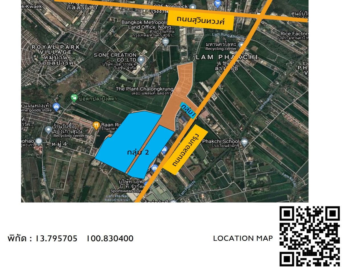 ขายที่ดินเปล่า 7-2-75 ไร่, 112-0-85.3 ไร่ ถ.ฉลองกรุง แปลงติดถ.ฉลองกรุง ด้านนอก 7-2-75 ไร่ ขายเหมา 57,693,150 บาท (ไร่ละ 7,504,800 บาท) แปลงติดถ.ฉลองกรุง ด้านใน 112-0-85.3 ไร่ ขายเหมา 520,310,398 บาท (
