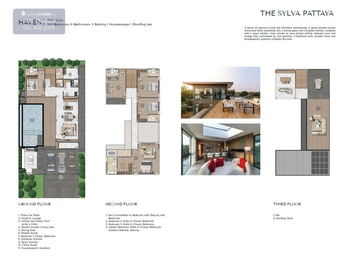 ข้อมูลโครงการ เดอะ ซิลวา พัทยา พัฒนาโดย บริษัท อาเนจา เอสเตทส์ จำกัด ผู้เชี่ยวชาญด้านอสังหาริมทรัพย์ระดับไฮเอนด์ โครงการครอบคลุมพื้นที่ 3-0-88 ไร่ ประกอบด้วยวิลล่า 3 ชั้น จำนวน 8 หลัง ออกแบบอย่างพิถีพิถันเพื่อให้มีพื้นที่ใช้สอยกว้างขวางพร้อมสระว่ายน้ำส่วนตัวและวิวธรรมชาติรอบด้าน โครงการตั้งอยู่ห่างจาก สนามกอล์ฟ Siam Country Club Old Course และ ตลาดน้ำพัทยา เพียง 10 นาที อีกทั้งยังใกล้กับ โรงเรียนนานาชาติฝรั่งเศส เหมาะสำหรับครอบครัวที่ต้องการคุณภาพชีวิตและการศึกษาที่ดี ฟังก์ชั่นของวิลล่า ขนาดที่ดิน 138.97 ถึง 164.67 ตารางเมตร พื้นที่ใช้สอย 546.9 และ 705 ตารางเมตร 4-5 ห้องนอน และ 5-6 ห้องน้ำ ห้องอเนกประสงค์พร้อมระเบียงและห้องน้ำในตัว ห้องนั่งเล่น Double Volume ที่โปร่งโล่ง ครัวยุโรป พร้อมเคาน์เตอร์ และ ครัวไทย สระว่ายน้ำระบบเกลือแบบ Infinity สวนส่วนตัวและพื้นที่พักผ่อนกลางแจ้ง ดาดฟ้าและพื้นที่กึ่งกลางแจ้ง สำหรับพักผ่อน ห้องแม่บ้าน ห้องเก็บของ และห้องซักรีด ที่จอดรถในร่ม รองรับได้ถึง 3 คัน สิ่งอำนวยความสะดวกระดับไฮเอนด์ • เลานจ์ส่วนตัวบนดาดฟ้า • สระว่ายน้ำระบบเกลือแบบ Infinity • ระบบบ้านอัจฉริยะ (Smart Home) • กล้องวงจรปิดและระบบรักษาความปลอดภัย 24 ชั่วโมง • Wet Bar และครัวยุโรปแบบเต็มรูปแบบ • อ่างอาบน้ำและสุขภัณฑ์ระดับพรีเมียม