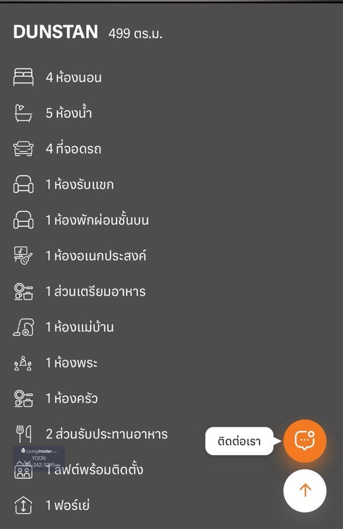 4 นอน 5 น้ำ 4 ที่จอดรถ 1 ห้องรับแขก 1 ห้องรับแขกชั้นบน 1 ห้องเอนกประสงค์ 1 ส่วนเตรียมอาหาร 1 ห้องแม่บ้าน 1 ห้องพระ 1 ห้องครัว 2 ส่วนรับประทานอาหาร 1 ลิฟท์พร้อมติดตั้ง 1 เฟอร์เย่ ราคาเริ่มต้น 40,000,000บาท สนใจนัดชมได้เลยคะ