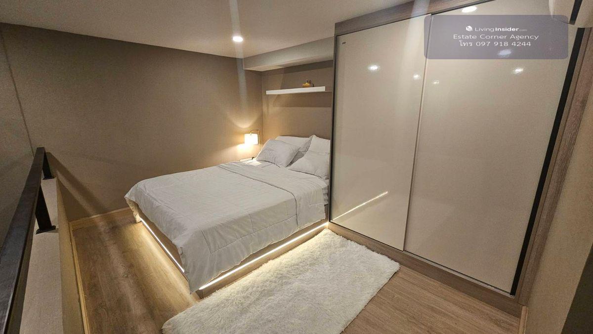 Listing no. 88640 Duplex Room พร้อมชั้นลอย •1 Bedrooms, 1 Bathrooms, Living Room, Separated Kitchen •พื้นที่ใช้สอยรวมชั้นลอย 13 sqm. ชั้นล่าง 29 sqm •เพดานสูง 4.2 m. สไตล์ Loft •ชั้น 21 ห้องมุม •1 Par