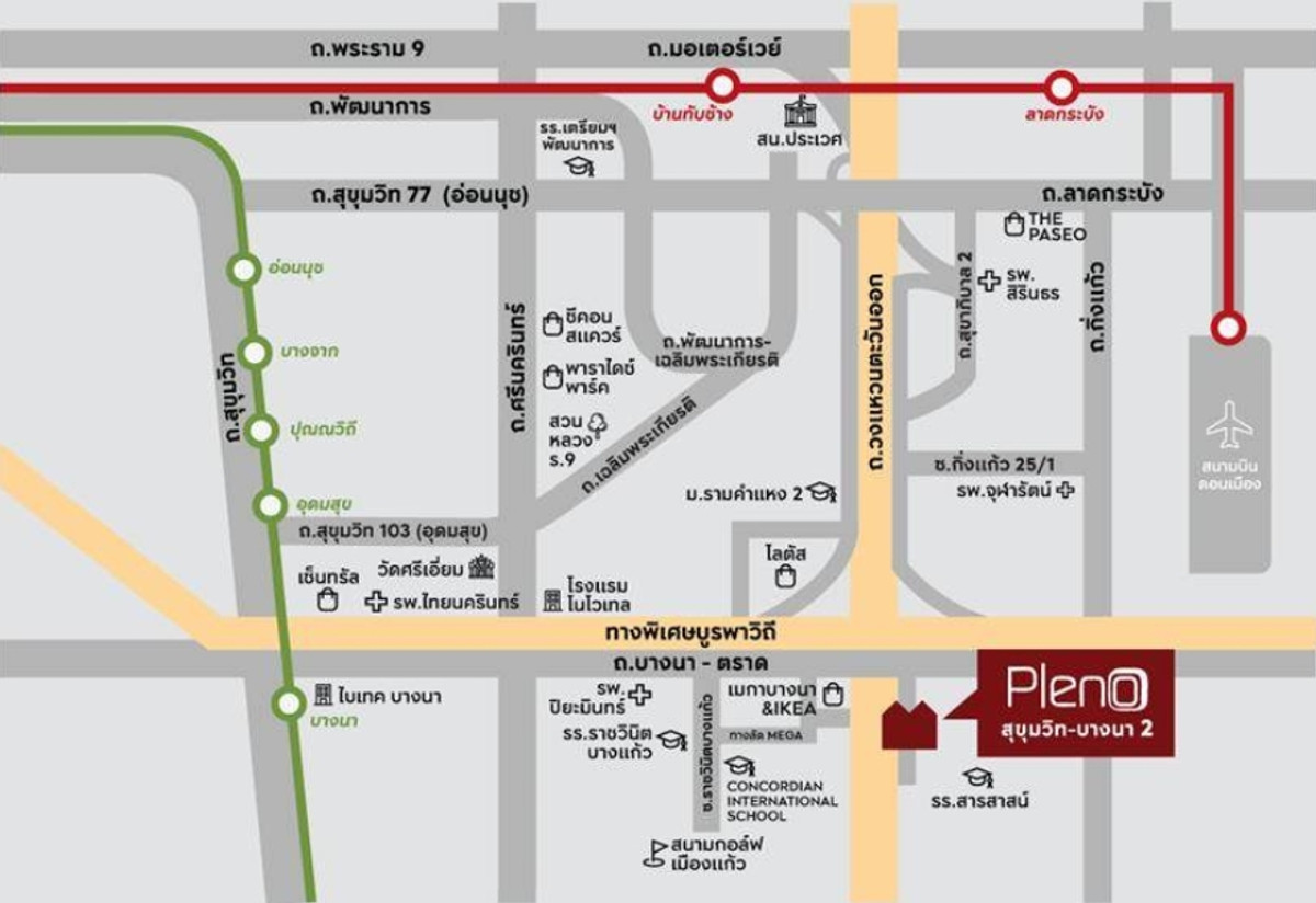 !!! พลีโน่ สุขุมวิท-บางนา2 (ของใหม่ทั้งหลัง + พร้อมเข้าอยู่) -เมกา บางนา (800 เมตร) -ทางพิเศษกาญจนาภิเษก (บางพลี - สุขสวัสดิ์) (2 กิโลเมตร) -ทางพิเศษบูรพาวิถี (3 กิโลเมตร) -MRT ศรีเอี่ยม (8 กิโลเมตร) -โรงพยาบาล (4 กิโลเมตร) -สนามบินสุวรรณภูมิ (14 กิโลเมตร) -รร.นานาชาติคอนคอร์เดียน (CIS) (2.5 กิโลเมตร) -รร.ราชวินิตบางแก้ว (2.5 กิโลเมตร) ** 35,000 บาท/เดือน (เงินประกัน2เดือน + ค่าเช่าล้วงหน้า 1เดือน) ทาวน์โฮม 2ชั้น 17.5 ตร.วา 106ตร.ม. ที่จอดรถในร่ม 2คัน 3ห้องนอน (มีแอร์ทุกห้อง) 2ห้องน้ำ + ห้องกระจก shower (เครื่องทำน้ำอุ่น1เครื่อง) ประตูหน้าบ้าน ดิจิตอล มุ้งลวดจีบทั้งหลัง * ห้องนั่งเล่น -โซฟารูปตัว L + โต๊ะหน้าโซฟา -โต๊ะรับประทานอาหารขนาดใหญ่ (นั่งได้ถึง6ท่าน) -ทีวี ขนาด 55" * ห้องครัว -ตู้เย็น9คิว -เครื่องซักผ้า พร้อมเครื่องอบผ้า 10/7 กก. -ไมโครเวฟ -เตาไฟฟ้า และ เครื่องดูดควัน * ห้องนอนใหญ่ -ทีวี ขนาด 43" -เตียง + ตู้เสื้อผ้า -โต๊ะแต่งหน้า / โต๊ะทำงาน * ห้องนอน 2 -เตียง + ตู้เสื้อผ้า * ห้องนอน 3 (ห้องอเนกประสงค์ สามารถจัดเป็นห้องทำงาน หรืออื่นๆได้) ** สิ่งอำนวยความสะดวกโครงการ - Clubhouse และ Fitnessเปิด 24ชม - Co -Working space - สระว่ายน้ำ 20เมตร - กล้องวงจรปิด รปภ24 ชม. - สนามเด็กเล่น - สวนส่วนกลาง
