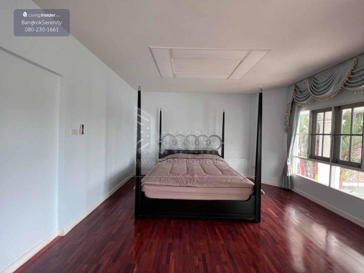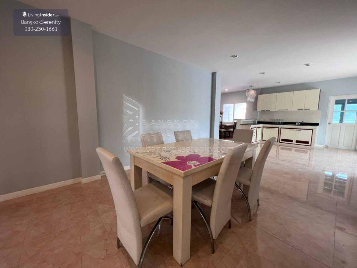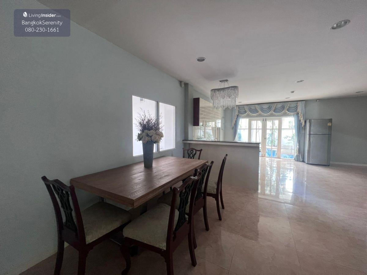 House for rent with private pool at Bangna 5 Bedrooms, 5 bathrooms Plus private pool and maid room 5 Cars parking Living space is about 450 sqms For rent 150,000 baht/month Facilities Fitness 24 hours