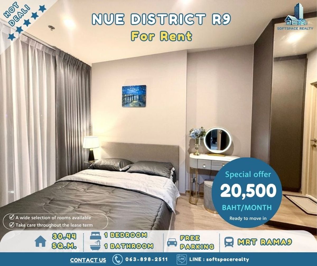 NUE District R9 🚈 MRT Rama 9 🛏 1 Bedroom 🛁 1 Bathroom 📐 Size: 30.44 sq.m. 🗞 Tower R (No Block View) 📍 Floor 15+ ðŸ’ļ Rental Price: 20,500 THB/month â€Ē Minimum 1 year contract â€Ē 1-month rent in advance + 2-month security deposit â€Ē Fully furnished with all essential electrical appliances ready to move in! 💁ðŸŧ‍♂ïļ Reservation and rental payments are made directly to the owner’s account. We verify ownership before every booking. ðŸĐ· We provide full support to both tenants and landlords throughout the rental period. ðŸ“đ Virtual room tours available via video call — convenient, safe, and no travel required. ðŸŒļ 🌞 ðŸŒļ 🌞 ðŸŒļ 🌞 ðŸŒļ 🌞 ðŸŒļ 🌞 ðŸŒļ 🏙ïļ āļ™āļīāļ§ āļ”āļīāļŠāļ—āļĢāļīāļ„ āļ­āļēāļĢāđŒ 9 🚈 MRT āļžāļĢāļ°āļĢāļēāļĄ 9 🛏 1 āļŦāđ‰āļ­āļ‡āļ™āļ­āļ™ ðŸ› 1 āļŦāđ‰āļ­āļ‡āļ™āđ‰āļģ 📐 āļ‚āļ™āļēāļ” 30.44 āļ•āļĢ.āļĄ. 🗞 āļ•āļķāļ R 📍 āļŠāļąāđ‰āļ™ 15+ ðŸ’ļ āļ„āđˆāļēāđ€āļŠāđˆāļē: 23,000 āļšāļēāļ—/āđ€āļ”āļ·āļ­āļ™ â€Ē āļŠāļąāļāļāļēāļ‚āļąāđ‰āļ™āļ•āđˆāļģ 1 āļ›āļĩ â€Ē āļ„āđˆāļēāđ€āļŠāđˆāļēāļĨāđˆāļ§āļ‡āļŦāļ™āđ‰āļē 1 āđ€āļ”āļ·āļ­āļ™ + āļ›āļĢāļ°āļāļąāļ™ 2 āđ€āļ”āļ·āļ­āļ™ â€Ē āđ€āļŸāļ­āļĢāđŒāļ™āļīāđ€āļˆāļ­āļĢāđŒāļ„āļĢāļš āđ€āļ„āļĢāļ·āđˆāļ­āļ‡āđƒāļŠāđ‰āđ„āļŸāļŸāđ‰āļēāļ„āļĢāļš āļžāļĢāđ‰āļ­āļĄāđ€āļ‚āđ‰āļēāļ­āļĒāļđāđˆ! 💁ðŸŧ‍♂ïļ āļŠāļģāļĢāļ°āđ€āļ‡āļīāļ™āļˆāļ­āļ‡āđāļĨāļ°āļ„āđˆāļēāđ€āļŠāđˆāļēāđ‚āļ”āļĒāļ•āļĢāļ‡āļāļąāļšāđ€āļˆāđ‰āļēāļ‚āļ­āļ‡āļŦāđ‰āļ­āļ‡ āļ•āļĢāļ§āļˆāļŠāļ­āļšāļ„āļ§āļēāļĄāđ€āļ›āđ‡āļ™āđ€āļˆāđ‰āļēāļ‚āļ­āļ‡āļāđˆāļ­āļ™āļ—āļģāļāļēāļĢāļˆāļ­āļ‡āļ—āļļāļāļ„āļĢāļąāđ‰āļ‡ ðŸĐ· āļžāļĢāđ‰āļ­āļĄāļ”āļđāđāļĨāļ—āļąāđ‰āļ‡āļœāļđāđ‰āđ€āļŠāđˆāļēāđāļĨāļ°āđ€āļˆāđ‰āļēāļ‚āļ­āļ‡āļ•āļĨāļ­āļ”āļĢāļ°āļĒāļ°āđ€āļ§āļĨāļēāļŠāļąāļāļāļēāđ€āļŠāđˆāļē ðŸ“đ āļĄāļĩāļšāļĢāļīāļāļēāļĢāļ§āļīāļ”āļĩāđ‚āļ­āļ„āļ­āļĨāđ€āļžāļ·āđˆāļ­āļŠāļĄāļŦāđ‰āļ­āļ‡āđāļšāļšāđ€āļĢāļĩāļĒāļĨāđ„āļ—āļĄāđŒ āļŠāļ°āļ”āļ§āļ āļ›āļĨāļ­āļ”āļ āļąāļĒ āđ„āļĄāđˆāļ•āđ‰āļ­āļ‡āđ€āļ”āļīāļ™āļ—āļēāļ‡ ðŸ“ž āļ•āļīāļ”āļ•āđˆāļ­/Contact (SoftSpace AGENT) āđ‚āļ—āļĢ/Tel: āļ„āļĨāļīāļāđ€āļžāļ·āđˆāļ­āļ”āļđāđ€āļšāļ­āļĢāđŒāđ‚āļ—āļĢāļ•āļīāļ”āļ•āđˆāļ­ Link LINE OA: \[[https://lin.ee/6jjNHNQ] LINE ID: @093kslhw | softspacerealty WhatsApp: āļ„āļĨāļīāļāđ€āļžāļ·āđˆāļ­āļ”āļđāđ€āļšāļ­āļĢāđŒāđ‚āļ—āļĢāļ•āļīāļ”āļ•āđˆāļ­ WeChat: softspacerealty