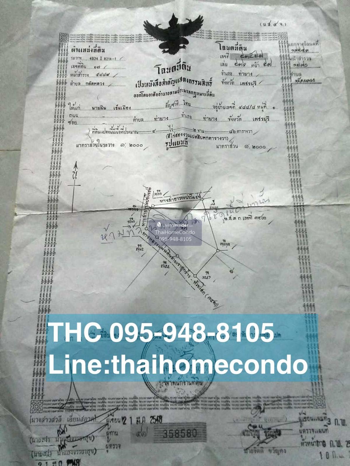 โฉนดที่ดินเลขที่ 43547 เล่มที่ 436 หน้า 47 เลขที่ดิน17 หน้าสำรวจ 5489 ระวาง 4934 I 8214-1 เนื้อที่ 4 ไร่ 2 งาน 86 ตรว. Google map : Link แผนที่ ไปที่ดินอ.เมือง จ.เพชรบุรี 1886 https://maps.app.goo.gl/