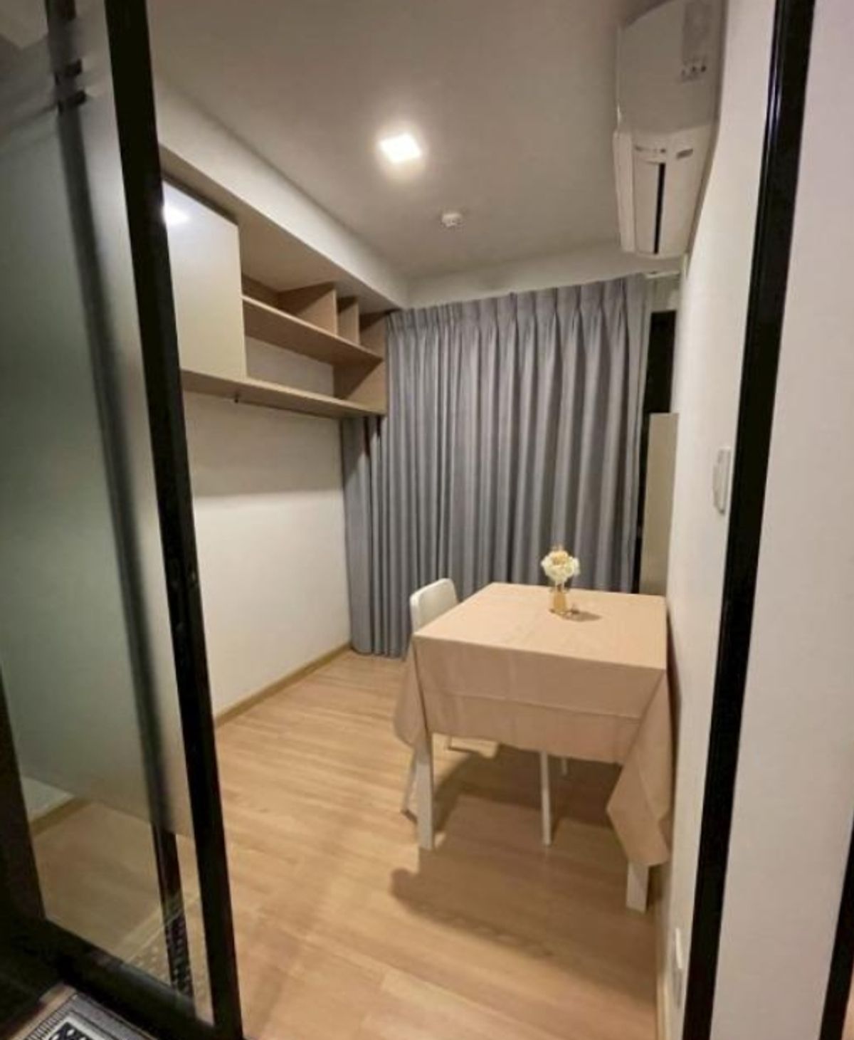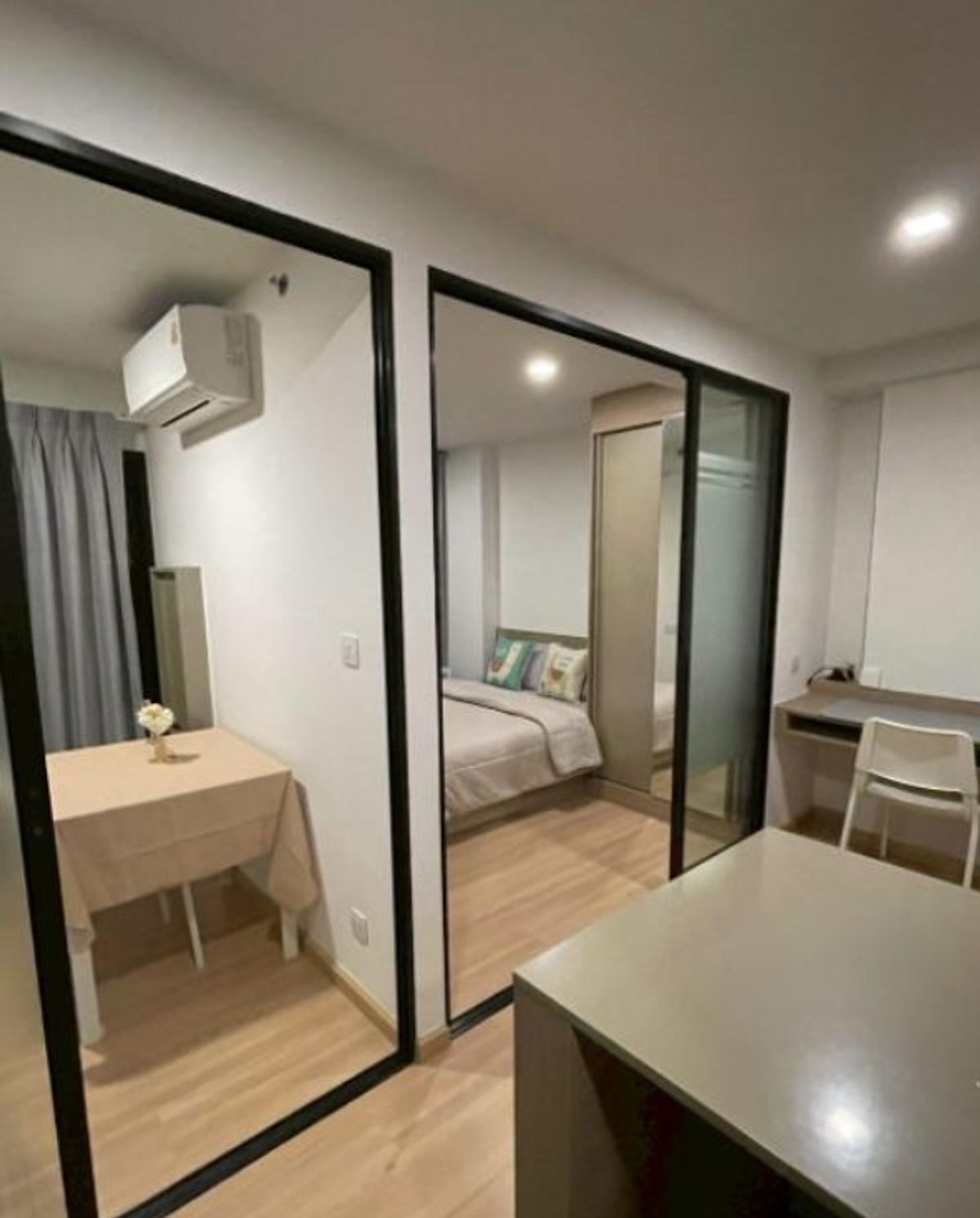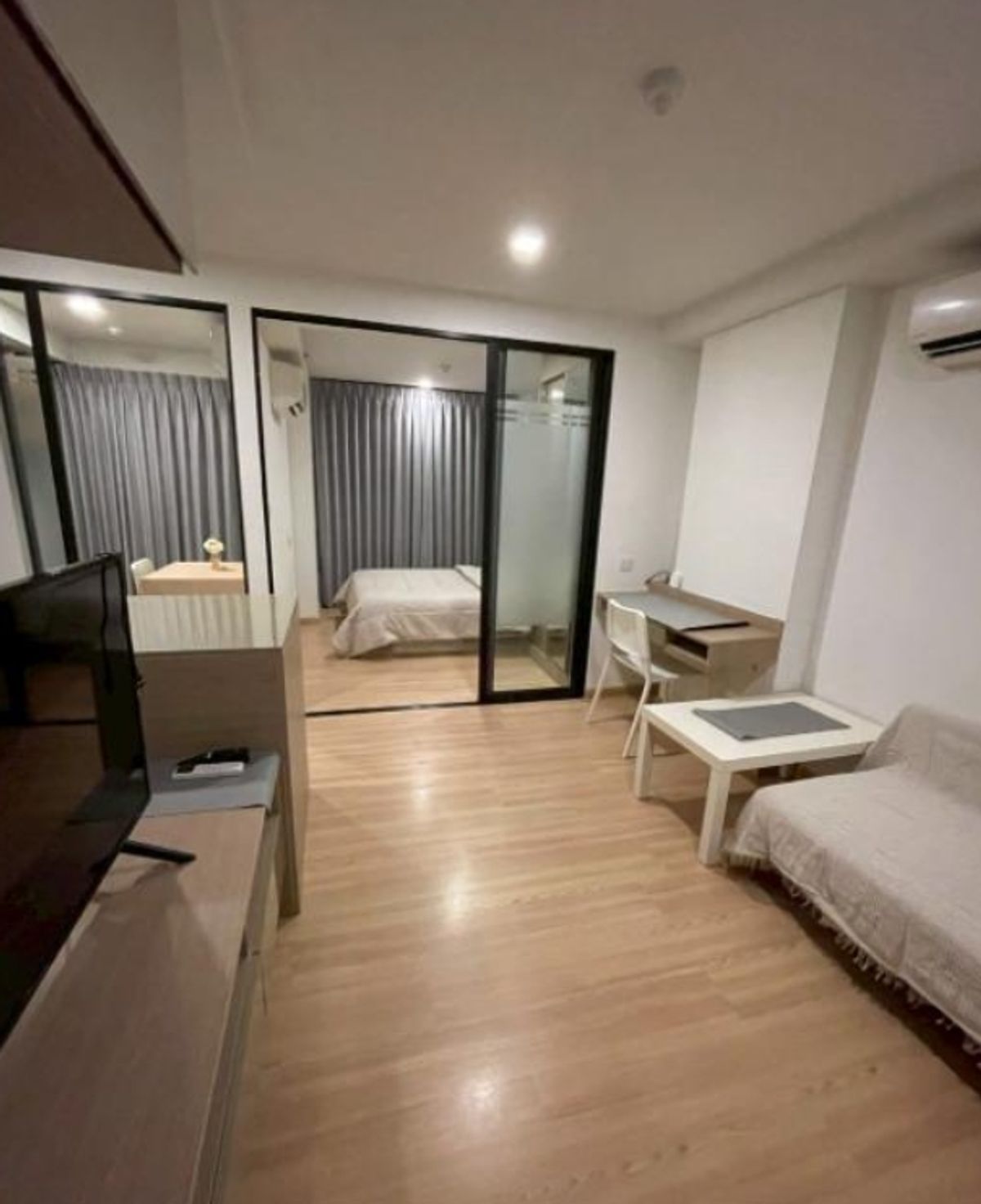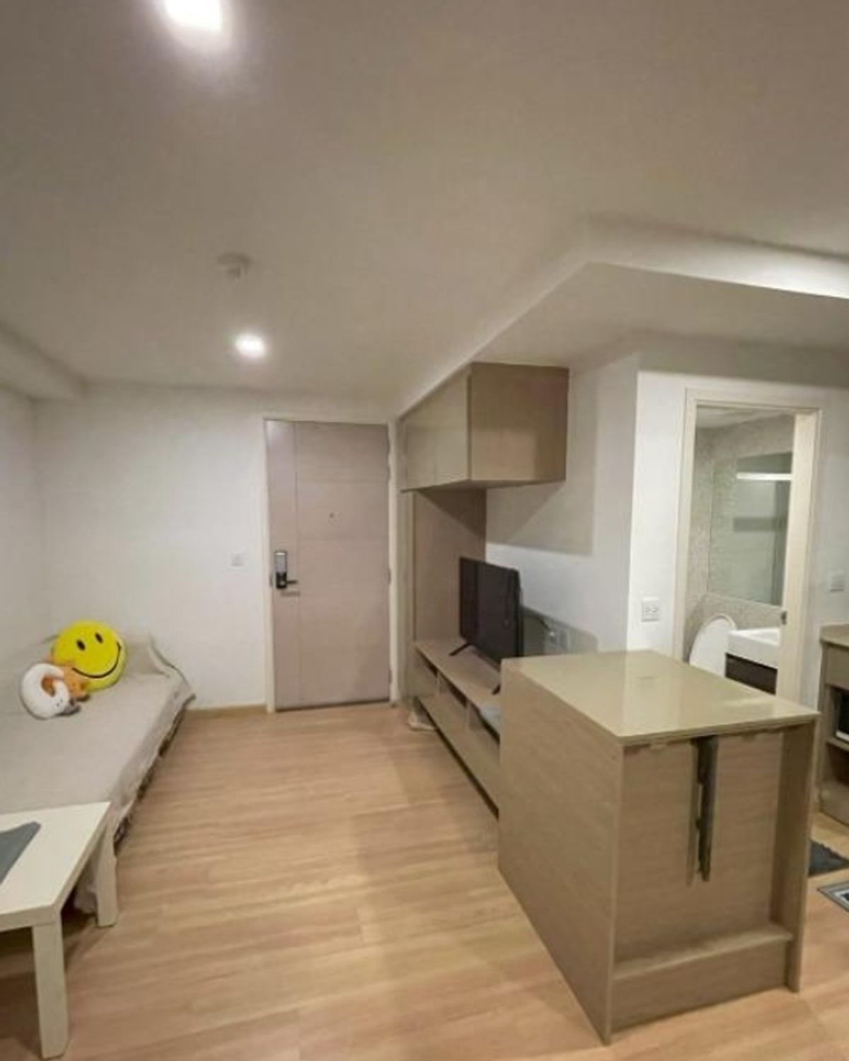 1 ห้องนอน 1 ห้องน้ำ 34.5ตรม ชั้น 10 13500/เดือน มัดจำ 2 เดือน ล่วงหน้า 1 เดือน สัญญาขั้นต่ำ 1 ปี เฟอร์นิเจอร์ - โซฟา - โต๊ะรับประทานอาหาร + เก้าอี้ - ชั้นวางทีวี - เตียง + ฟูก เครื่องใช้ไฟฟ้า - ทีวี -