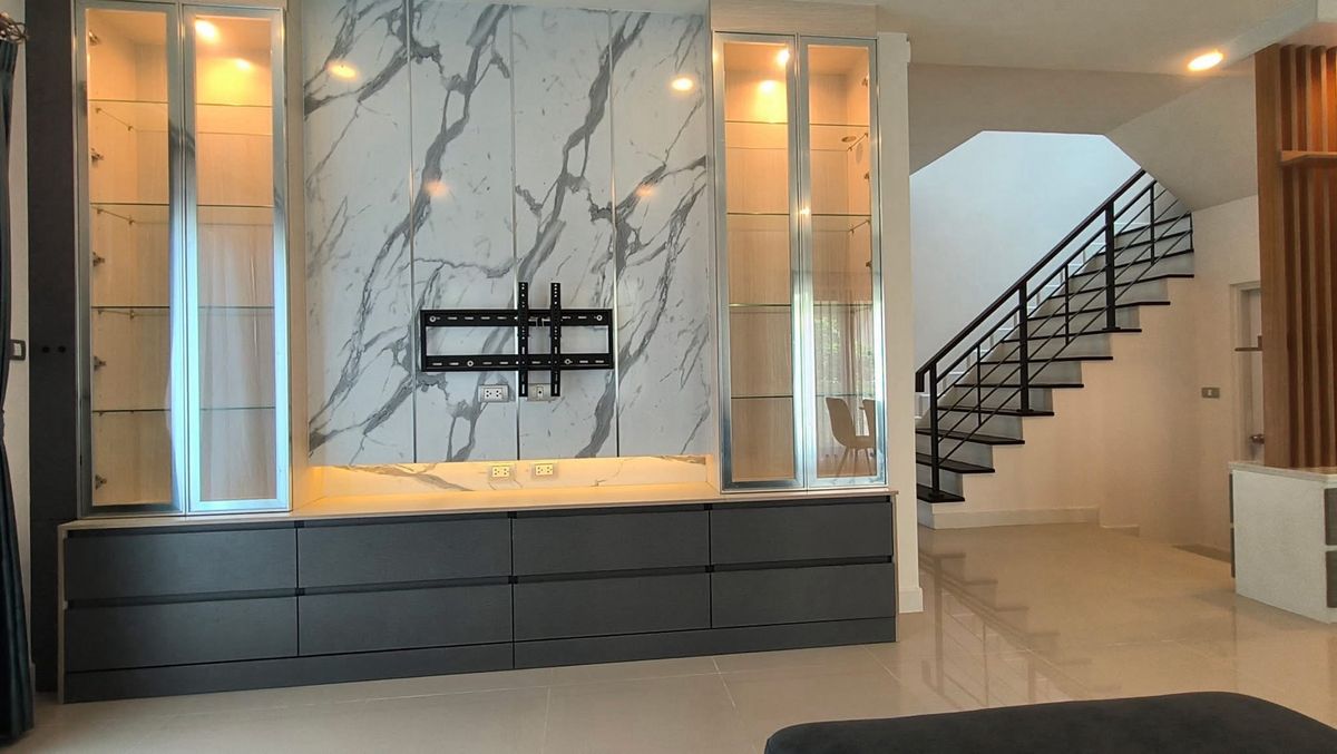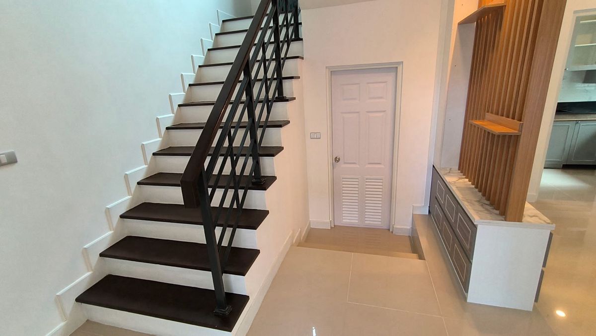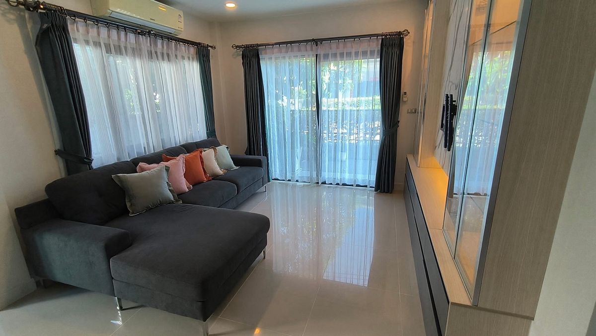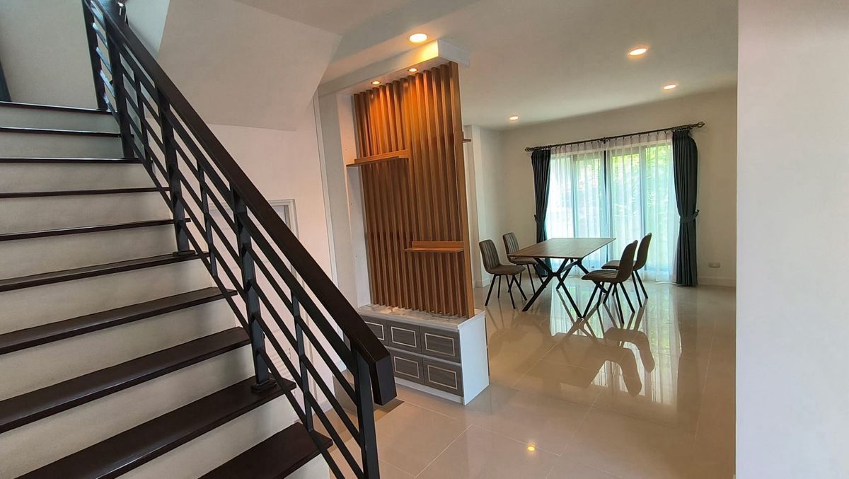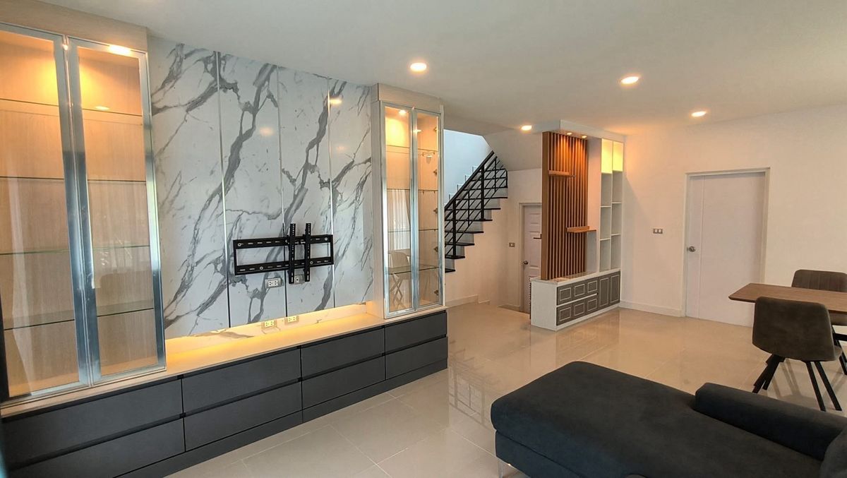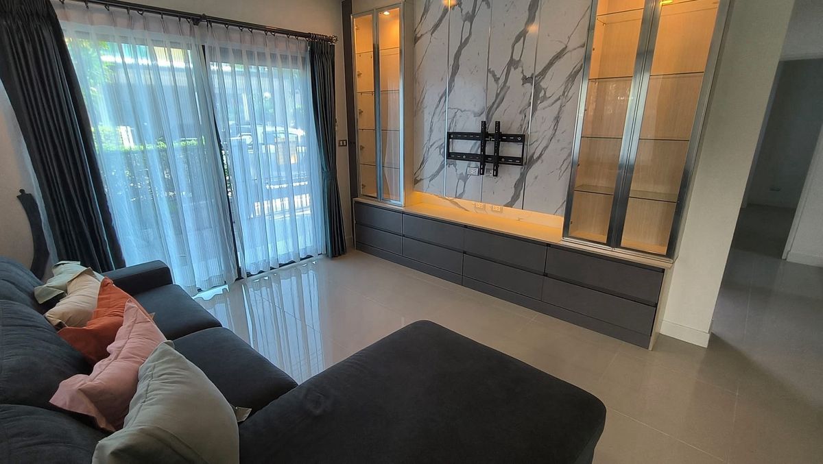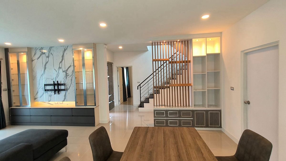 #บ้านเดี่ยว2ชั้น (บ้านมือสอง) 4ห้องนอน 5ห้องน้ำ 1ครัว 1 ห้อง living room เนื้อที 50.7ตรว. พื้นที่ใช้สอย 190 ตรม. ตกแต่งบิ้วอิน บางส่วน โซฟา ผ้าม่าน ฝและแอร์4ตัว โครงการ ของ AP Centro อ่อนนุช -สุวรรณภู