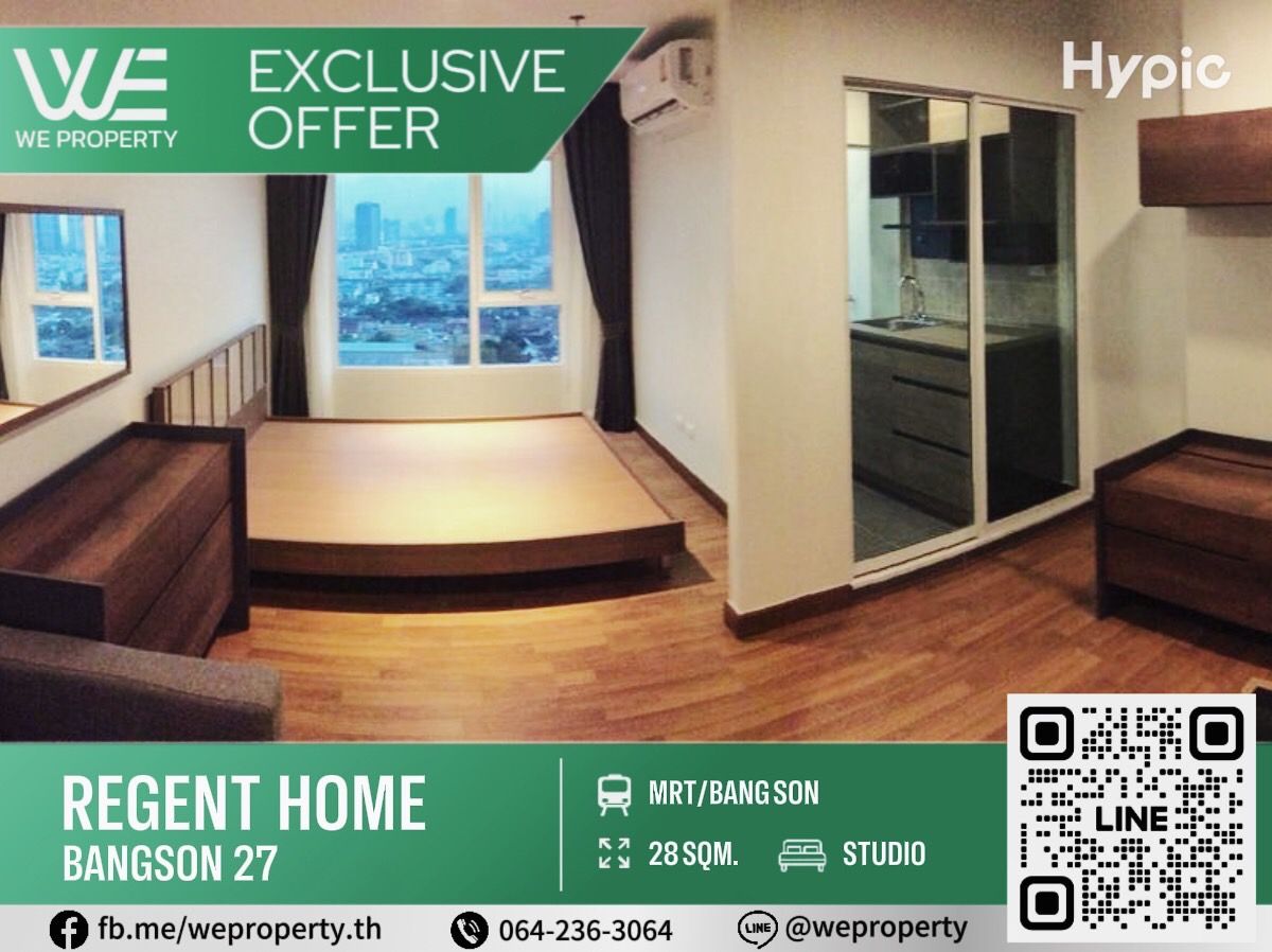 รหัสทรัพย์ (NC-JOB01) Regent Home บางซ่อน เฟส 27 สตูดิโอ 1 ห้องน้ำ ขนาด 28 ตร.ม. ชั้น 20 อาคาร C ห้องสวยชั้นสูงทำเลดี วิวนอก ขนาดห้องราคาดีที่สุดในโครงการ!!✨✨ ขายเพียง 1,250,000 บ.เท่านั้น!! ✅มีห้องให