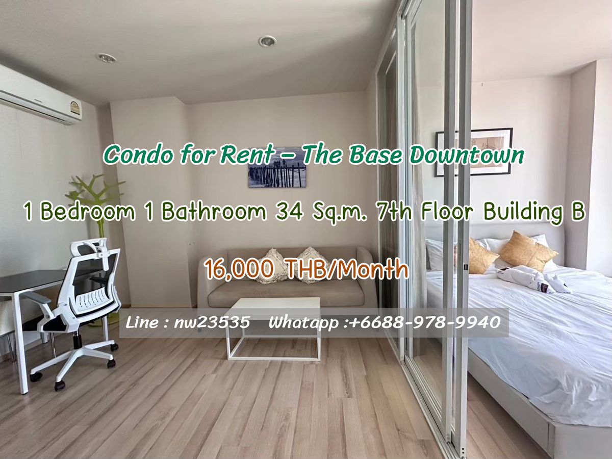 ✨ คอนโดให้เช่า – The Base Downtown, Phuket (อาคาร B) ✨ 1 ห้องนอน / 1 ห้องน้ำ / 1 ห้องครัว / 1 ที่จอดรถ 📐 ขนาด 34 ตร.ม. | วิวนอก | ชั้น 7 | อาคาร B 💰 ราคาเช่า 16,000 บาท/เดือน (สัญญา 1 ปี) 🔑 เงื่อนไขกา