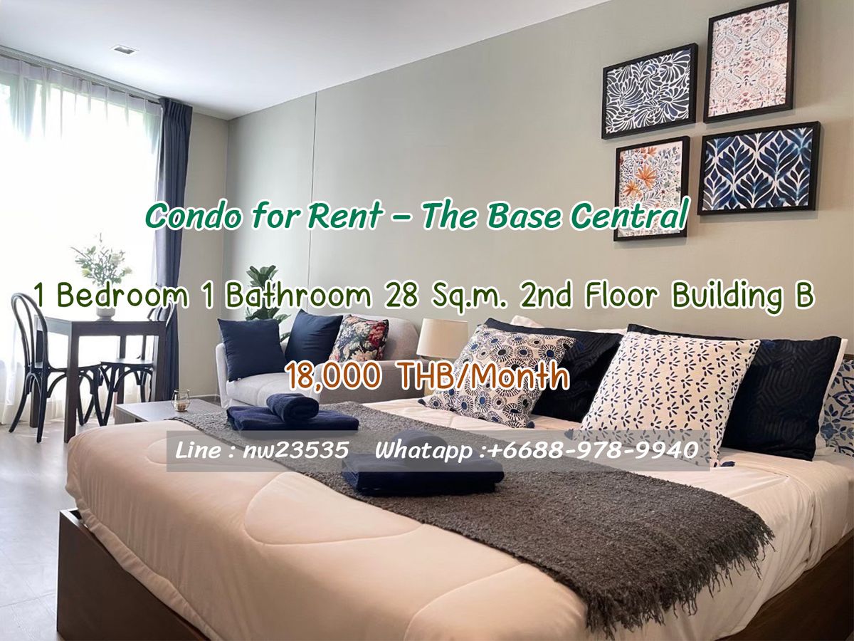 ✨ คอนโดให้เช่า – The Base Central Phuket (อาคาร B) ✨ 1 ห้องนอน | 1 ห้องน้ำ | พื้นที่ 28 ตร.ม. | วิวนอก | ชั้น 2 | อาคาร B 💰 ราคาเช่า 18,000 บาท/เดือน (สัญญา 1 ปี) 🔑 เงื่อนไขการชำระเงิน: ประกัน 2 เดือน + ล่วงหน้า 1 เดือน 📍 พร้อมเข้าอยู่ได้ทันที! —--------------------- 📞 ช่องทางการติดต่อ K.Nick : คลิกเพื่อดูเบอร์โทรติดต่อ WhatsApp : คลิกเพื่อดูเบอร์โทรติดต่อ Line ID : nw23535 คลิก : Line.me/Rzz0j7a