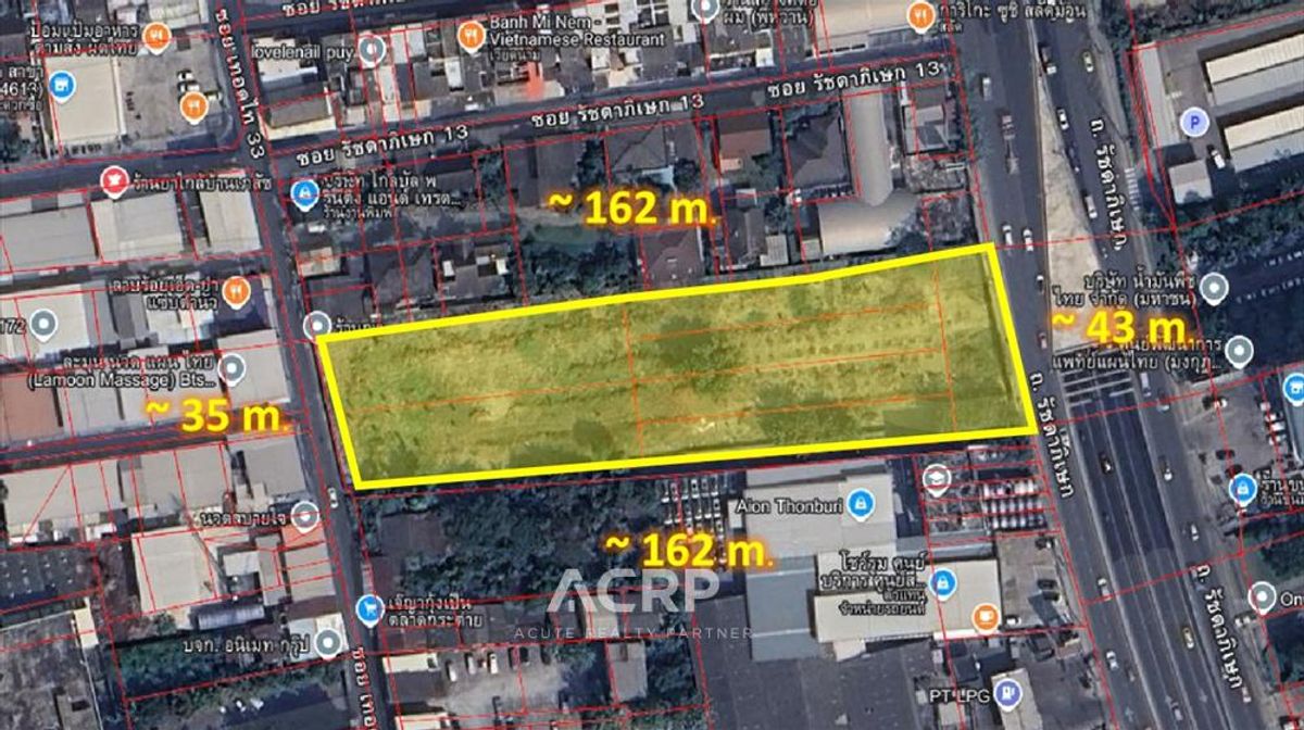 ขายที่ดินติดถนนรัชดาภิเษก ใกล้ The Mall ท่าพระ ทำเลเด่น ใจกลางย่านชุมชน ราคาเพียง 908,500,723 บาท รายละเอียดทรัพย์ ขนาดที่ดิน: 4-0-51 ไร่ (1,651 ตารางวา) หน้ากว้าง: ประมาณ 43 เมตร ลึก: ประมาณ 162 เมตร ผังเมือง: สีน้ำตาล ย.8 รองรับการพัฒนาได้หลากหลายรูปแบบ จุดเด่น ที่ดินติดถนนใหญ่รัชดาภิเษก การสัญจรสะดวกทั้งรถยนต์และรถไฟฟ้า ทำเลเหมาะสำหรับสร้าง คอนโดมิเนียมหรู, อาคารสำนักงาน, อาคารพาณิชย์ หรือโรงพยาบาลเอกชน ล้อมรอบด้วยสิ่งอำนวยความสะดวกครบครัน สถานที่ใกล้เคียง BTS ตลาดพลู The Mall ท่าพระ ตลาดเดินเล่น ท่าพระ รพ.รัชดา-ท่าพระ สำนักงานประกันสังคมพื้นที่ 5