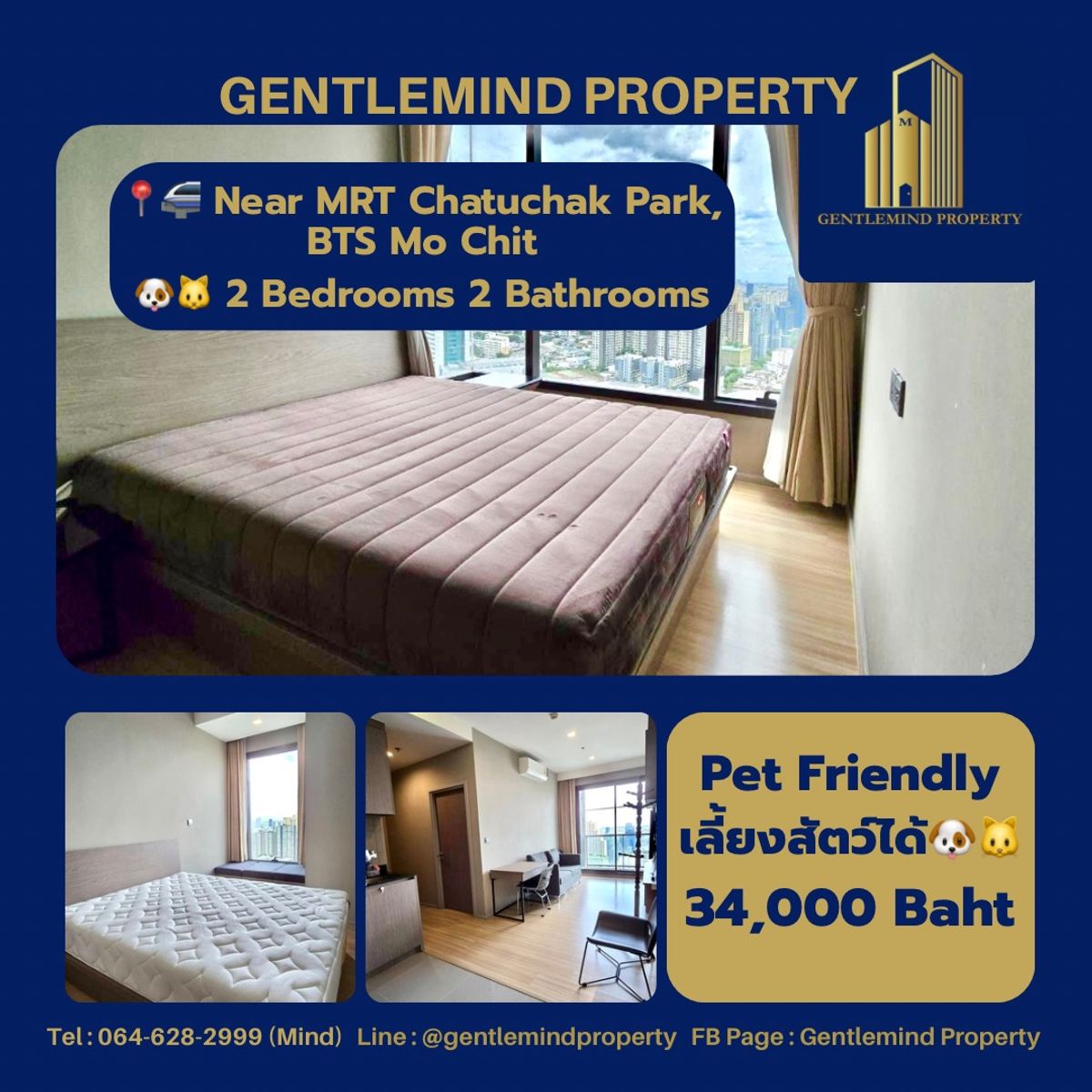 ☀️💎🌍 Rent : M Jatujak Pet Friendly เลี้ยงสัตว์ได้ 🐶🐱| Gentlemind Property