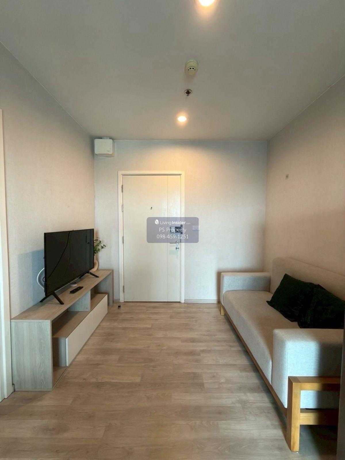 ราคา: 13,900 บาท/เดือน  ขนาด: 27 ตรม.  ชั้น: 29 รูปแบบห้อง: ONE BEDROOM สิ่งอำนวยความสะดวก: ร้านสะดวกซื้อ, กล้องวงจรปิด, คีย์การ์ด, ฟิตเนส, สระว่ายน้ำ, ห้องซักรีด, รปภ. 24 ชม. เฟอร์นิเจอร์: ทีวี, โซฟา