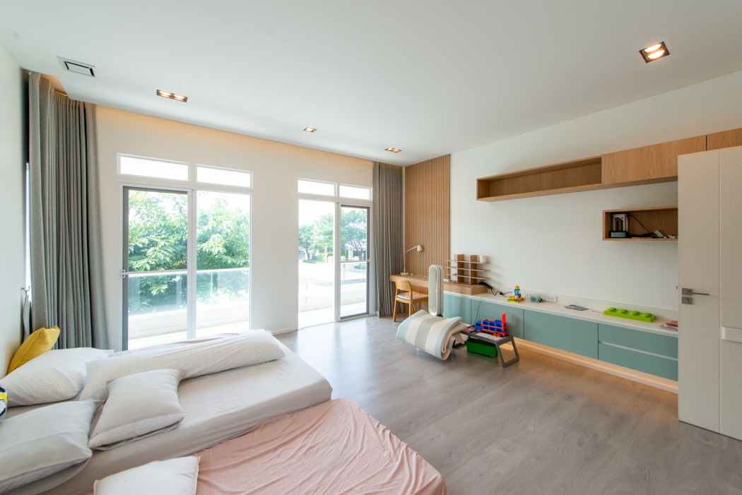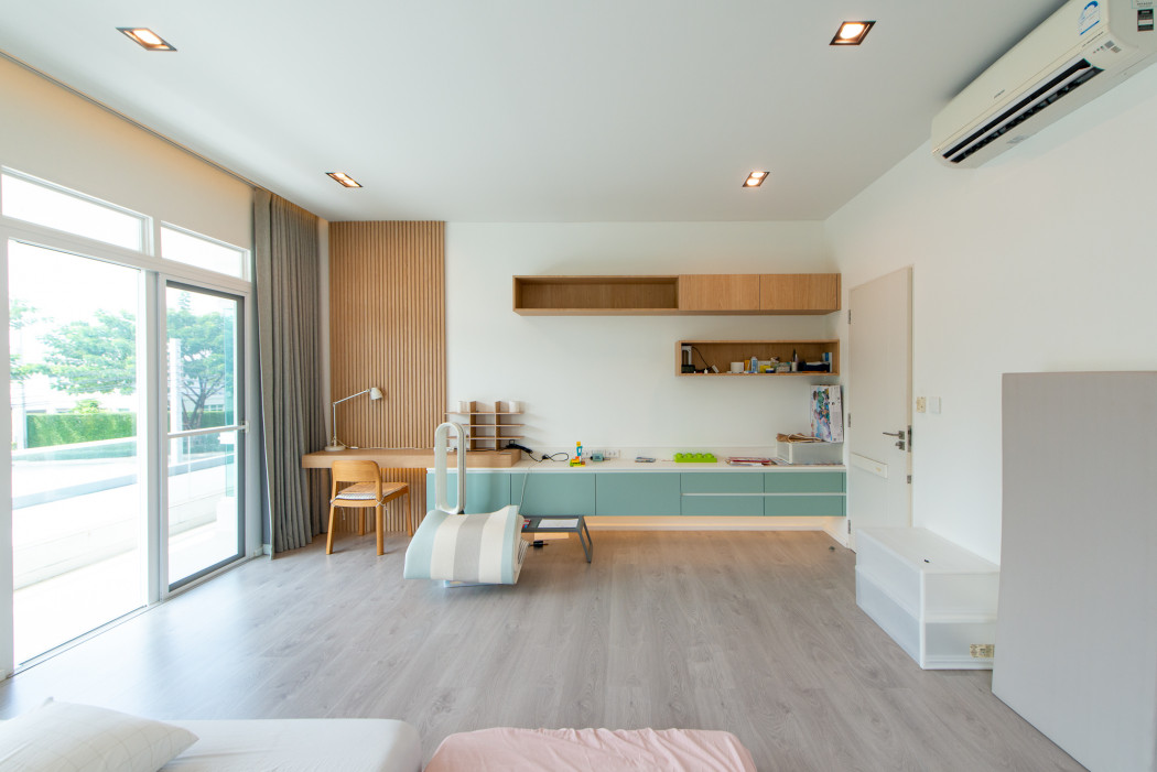- ชนิด 4 ห้องนอน 5 ห้องน้ำ มีห้องนอนชั้นล่าง