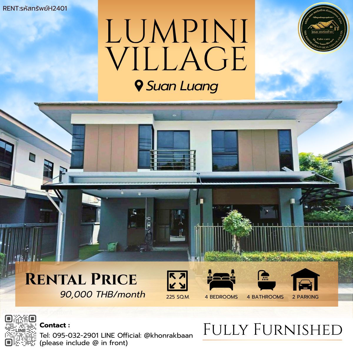 RENT:รหัสทรัพย์ H2401✨ ปล่อยเช่าบ้านเดี่ยวพร้อมเข้าอยู่ หมู่บ้านลุมพินี สวนหลวง ร.9 ✨Fully Furnished ✨ค่าเช่า 90,000 บาท/เดือน 🏡 รายละเอียดบ้าน พื้นที่ใช้สอย 225 ตร.ม. 4 ห้องนอน | 4 ห้องน้ำ 1 ห้องอเนกประสงค์ (ชั้น 2) 1 ห้องแม่บ้านพร้อมห้องน้ำในตัว 🚗 ที่จอดรถ 2 คัน (EV Car Charger พร้อมใช้งาน) 🌿 สนามหญ้าข้างบ้าน 50 ตร.ม. เหมาะให้เด็กวิ่งเล่น / จัดสวน 🛋️ บ้านพร้อมเฟอร์นิเจอร์ครบทุกห้อง (Fully Furnished) ห้องนอน: เตียงนอน, ตู้เสื้อผ้า Built-in, โต๊ะเครื่องแป้ง Built-in, ชั้นวางทีวี ห้องนั่งเล่น: โซฟา, โต๊ะกลาง, ชั้นวางทีวี Built-in ห้องรับประทานอาหาร: โต๊ะรับประทานอาหารนั่งได้ 6–8 ที่นั่ง ห้องครัว: เคาน์เตอร์ครัว Built-in, เตาแก๊ส, เตาดูดควัน, ไมโครเวฟ, ตู้เย็น เครื่องใช้ไฟฟ้า: แอร์ทุกห้อง (ระบบกรองฝุ่น PM 2.5 ในตัว) เครื่องทำน้ำอุ่น / ตู้เย็น / เครื่องซักผ้า / ไมโครเวฟ / พัดลม / อินเตอร์เน็ต WiFi และตัวกระจายสัญญาณชั้น 2 ผ้าม่าน VC Fabric Allergy Care เหมาะสำหรับครอบครัวที่มีเด็กหรือผู้เป็นภูมิแพ้ 🏢 สิ่งอำนวยความสะดวกภายในโครงการ สระว่ายน้ำ / สวน / สนามเด็กเล่น / ฟิตเนส / คลับเฮ้าส์ กล้อง CCTV และเจ้าหน้าที่รักษาความปลอดภัยตลอด 24 ชั่วโมง 📌 ทำเลศักยภาพ 🌳 ติดสวนหลวง ร.9 และบึงรับน้ำหนองบอน ✈️ ใกล้สนามบินสุวรรณภูมิ 🏫 ใกล้โรงเรียนนานาชาติ: Concordian / Bangkok Pattana / Thai-Singapore / Pan-Asia / St. Mark’s (ศรีนครินทร์) / Charter International School / Dadi 🏥 ใกล้ รพ. สมิติเวช-ศรีนครินทร์ / สินแพทย์-ศรีนครินทร์ / ไทยนครินทร์ / ศิครินทร์ 🛒 ใกล้ห้างสรรพสินค้า: เมกะบางนา / เซ็นทรัลบางนา / พาราไดซ์ / ซีคอนสแควร์ / Makro / MaxValu พัฒนาการ / BigC 🚆 เดินทางเข้าเมืองสะดวก 💰 ค่าเช่า 90,000 บาท/เดือน (สัญญารายปี) 💵 เงินประกัน 2 เดือน + ค่าเช่าล่วงหน้า 1 เดือน -------------------------------------- For Rent: Ready-to-move-in Single House at Lumpini Village Suan Luang R.9 Usable area: 225 sq.m. 4 Bedrooms | 4 Bathrooms 1 Multipurpose room (2nd floor) 1 Maid’s room with en-suite bathroom 🚗 Parking for 2 cars (EV Car Charger ready to use) 🌿 Side lawn of 50 sq.m., perfect for kids to play or for a private garden 🛋️ Fully Furnished in every room Bedrooms: Beds, built-in wardrobes, built-in dressing tables, TV shelves Living Room: Sofa, coffee table, built-in TV shelf Dining Room: Dining table for 6–8 seats Kitchen: Built-in counter, gas stove, range hood, microwave, refrigerator Electrical appliances: Air conditioners in every room (with built-in PM 2.5 filter system) Water heaters / Refrigerator / Washing machine / Microwave / Fans / WiFi and 2nd floor router Curtains: VC Fabric Allergy Care – suitable for families with children or allergy-sensitive members 🏢 Project Facilities Swimming pool / Garden / Playground / Fitness / Clubhouse CCTV and 24-hour security 📌 Prime Location 🌳 Next to Suan Luang Rama IX Park and Nong Bon Reservoir ✈️ Close to Suvarnabhumi Airport 🏫 Nearby international schools: Concordian / Bangkok Pattana / Thai-Singapore / Pan-Asia / St. Mark’s (Srinakarin) / Charter International School / Dadi 🏥 Nearby hospitals: Samitivej Srinakarin / Synphaet Srinakarin / Thai Nakarin / Sikarin 🛒 Nearby shopping malls: Mega Bangna / Central Bangna / Paradise Park / Seacon Square / Makro / MaxValu Pattanakarn / BigC 🚆 Convenient access to the city center 💰 Rental Price 90,000 THB / month (1-year contract) 💵 2 months deposit + 1 month advance rent ---------------------------------------------------------- 🏢 The Khonrakbaan Real Estate Co., Ltd 📍บริการหลังการเช่าตลอดสัญญา | Full after-rent support throughout the lease ⚠️ ปล่อยเช่าราคาเจ้าของ | Rent at owner’s price ⚠️ 💁♀️ รับจัดหาออเดอร์ / รับฝากเช่า / ปล่อยเช่า | Property sourcing / consignment / leasing services 📅 นัดหมายล่วงหน้า 1 วัน | Appointme