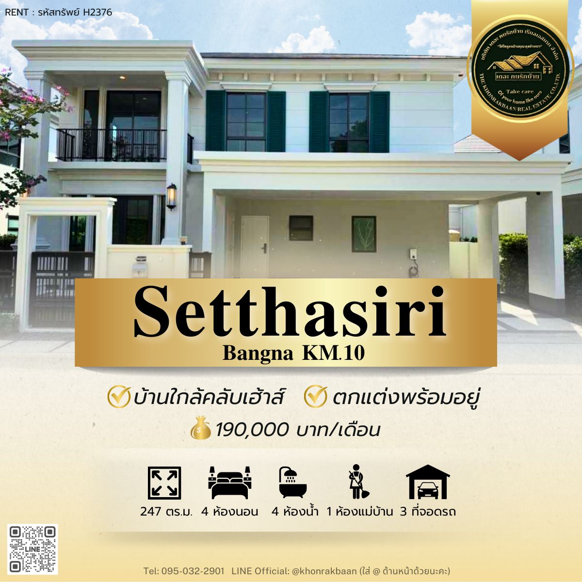 RENT:รหัสทรัพย์H2376 ให้เช่า✨ 𝐒𝐞𝐭𝐭𝐡𝐚𝐬𝐢𝐫𝐢 𝐁𝐚𝐧𝐠𝐧𝐚 𝐊𝐌.𝟏𝟎 | เศรษฐสิริ บางนา กม.10 (แสนสิริ) ✨ 🏠 บ้านเดี่ยว 2 ชั้น พร้อมเข้าอยู่! 🏡 190,000 บาท/เดือน 🔥🔥 บ้านใกล้คลับเฮ้าส์ ในซอยมีเพียง 4 หลังเท่านั้น ! 🔥🔥 🏡 ตกแต่งพร้อมอยู่ : 190,000 บาท/เดือน 📏 รายละเอียดบ้านแบบ LAWRENCE (ลอเรนซ์) : - เนื้อที่ดิน : 59.30 ตร.ว. - พื้นที่ใช้สอย : 247 ตร.ม. - ฟังก์ชัน : - 4 ห้องนอน 🛏️ - 4 ห้องน้ำ 🚿 - 1 ห้องรับแขก 🛋️ - 1 ส่วนรับประทานอาหาร 🍽️ - 1 ห้องครัว 🍳 - 1 ห้องแม่บ้าน 👩🍳 - 3 ที่จอดรถ 🚗 🌟 สิ่งอำนวยความสะดวกในโครงการ : - สระว่ายน้ำระบบเกลือ 🏊♂️ (แยกสำหรับเด็กเพื่อความปลอดภัย) - ฟิตเนส 💪 - ห้องประชุม และ Sansiri Backyard 🪴 - ระบบรักษาความปลอดภัย 24 ชั่วโมง 🔒 📍 การเดินทางสะดวก : - ใกล้ทางด่วนบูรพาวิถี 🚙 - มอเตอร์เวย์ และสนามบินสุวรรณภูมิ ✈️ 🏢 สถานที่ใกล้เคียง : - ห้างสรรพสินค้า : เมกา บางนา, เซ็นทรัล วิลเลจ, ดีไซน์วิลเลจ 🛍️ - โรงเรียน : Verso International School, Berkeley International School 🎓 - โรงพยาบาล : รพ.สมิติเวช ศรีนครินทร์, รพ.พริ้นซ์ สุวรรณภูมิ 🏥 - สนามกอล์ฟ : วินมิล, กรีนวัลเล่ย์, ธนาซิตี้ ⛳ ********************************************************************* ✨ 𝐒𝐞𝐭𝐡𝐚𝐬𝐢𝐫𝐢 𝐁𝐚𝐧𝐠𝐧𝐚 𝐊𝐌.𝟏𝟎 | Setthasiri Bangna KM.10 (Sansiri) ✨ 🏠 2-Storey Detached House, Ready to Move In! 💎 RENT: 🏡 Fully Furnished : 190,000 THB / month 🔥🔥 Near the Clubhouse — Only 4 houses in the lane! 🔥🔥 📏 House Type: LAWRENCE * Land Area: 59.30 sq.wah * Usable Area: 247 sq.m. * Functions: * 4 Bedrooms 🛏️ * 4 Bathrooms 🚿 * 1 Living Room 🛋️ * 1 Dining Area 🍽️ * 1 Kitchen 🍳 * 1 Maid’s Room 👩🍳 * 3 Parking Spaces 🚗 🌟 Project Facilities: * Salt System Swimming Pool 🏊♂️ (separate kids’ pool for safety) * Fitness 💪 * Meeting Room & Sansiri Backyard 🪴 * 24-hour Security 🔒 📍 Convenient Location: * Near Burapha Withi Expressway 🚙 * Motorway & Suvarnabhumi Airport ✈️ 🏢 Nearby Places: * Shopping Malls: Mega Bangna, Central Village, Design Village 🛍️ * Schools: Verso International School, Berkeley International School 🎓 * Hospitals: Samitivej Srinakarin, Princ Suvarnabhumi 🏥 * Golf Courses: Windmill, Green Valley, Thana City ⛳ ********************************************************************* ✨ 𝐒𝐞𝐭𝐡𝐚𝐬𝐢𝐫𝐢 𝐁𝐚𝐧𝐠𝐧𝐚 𝐊𝐌.𝟏𝟎 | 曼谷 Setthasiri Bangna 公寓(Sansiri)✨ 🏠 独栋别墅,两层,拎包入住! 💎 租金: 🏡 精装修 : 190,000 泰铢 / 月 🔥🔥 靠近会所,小区此巷仅有 4 套房!🔥🔥 📏 房型:LAWRENCE * 占地面积:约 237 平方米 * 使用面积:247 平方米 * 功能分区: * 4 间卧室 🛏️ * 4 间浴室 🚿 * 1 客厅 🛋️ * 1 餐厅 🍽️ * 1 厨房 🍳 * 1 保姆房 👩🍳 * 3 个停车位 🚗 🌟 项目设施: * 盐水系统泳池 🏊♂️(设有儿童池,安全分区) * 健身房 💪 * 会议室 & Sansiri Backyard 🪴 * 24 小时安保 🔒 📍 交通便利: * 靠近 Burapha Withi 高速 🚙 * 高速公路 & 素万那普机场 ✈️ 🏢 周边配套: * 商场:Mega Bangna, Central Village, Design Village 🛍️ * 学校:Verso 国际学校, Berkeley 国际学校 🎓 * 医院:Samitivej Srinakarin 医院, Princ Suvarnabhumi 医院 🏥 * 高尔夫球场:Windmill, Green Valley, Thana City ⛳ ---------------------------------------------------------- 🏢 The Khonrakbaan Real Estate Co., Ltd 📍บริการหลังการเช่าตลอดสัญญา | Full after-rent support throughout the lease ⚠️ ปล่อยเช่าราคาเจ้าของ | Rent at owner’s price ⚠️ 💁♀️ รับจัดหาออเดอร์ / รับฝากเช่า / ปล่อยเช่า | Property sourcing / consignment / leasing services 📅 นัดหมายล่วงหน้า 1 วัน | Appointment required 1 day in advance 👇 Contact BEE (Thai/Eng) 👇 📞 Tel: คลิกเพื่อดูเบอร์โทรติดต่อ 📱 WhatsApp: คลิกเพื่อดูเบอร์โทรติดต่อ 💬 LINE Official: @khonrakbaan (ใส่ @ ด้านหน้าด้วยนะคะ) ---------------------------------------------------------- 👇 ติดต่อ คุณพลอย 👇 📞 Tel: คลิกเพื่อดูเบอร์โทรติดต่อ , คลิกเพื่อดูเบอร์โทรติดต่อ 📱 Wechat: @thekhonrakbaan 💬 LINE Official: @thekhonrakbaan (ใส่ @ ด้านหน้าด้วยนะคะ) ----------------------