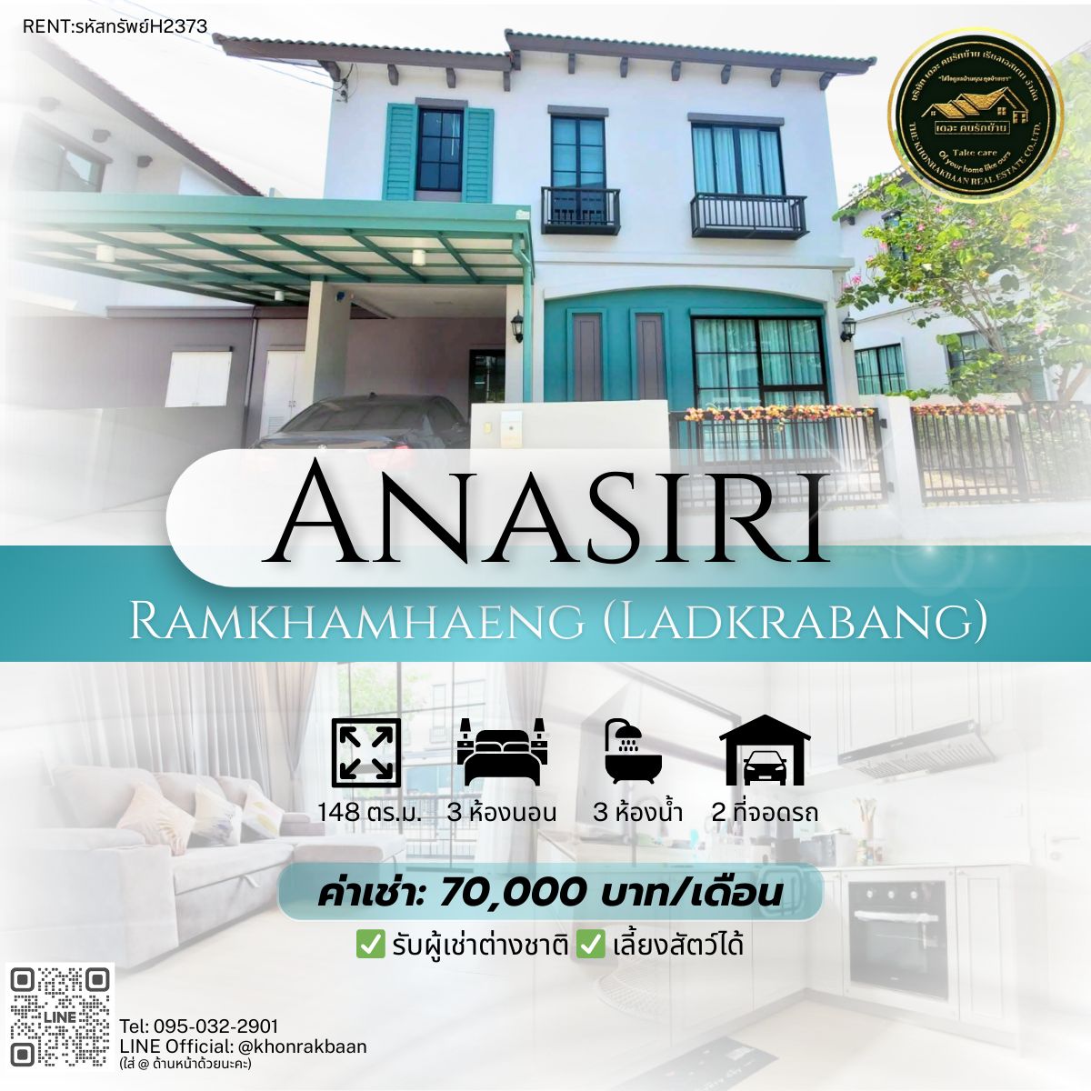 RENT:รหัสทรัพย์H2373 🏡 For Rent | ให้เช่า บ้านแฝด Anasiri Ramkhamhaeng (Ladkrabang) 💰 ค่าเช่า: 70,000 บาท/เดือน ✅ รับผู้เช่าต่างชาติ ✅ เลี้ยงสัตว์ได้ 3 ห้องนอน 🛏️ 3 ห้องน้ำ 🛁 📑 สัญญาเช่า: มัดจำ 2 เดือน + ล่วงหน้า 1 เดือน ค่าไฟฟ้า จ่ายตรงการไฟฟ้า ⚡ ค่าน้ำประปา จ่ายตรงการประปา 💧 📐 รายละเอียดบ้าน บ้านแฝด (อายุบ้าน 2 ปีครึ่ง) พื้นที่ใช้สอย 148 ตร.ม. 3 ห้องนอน 🛏️ | 3 ห้องน้ำ 🛁 ที่จอดรถ 2 คัน 🚘 ห้องครัวพร้อมเครื่องใช้ไฟฟ้าครบ 👨🍳 ✨ จุดเด่นพิเศษ ☑️ เครื่องกรองน้ำดื่ม 💧🥛 (ไม่ต้องซื้อน้ำขวด) ☑️ เครื่องกรองน้ำใช้ภายในบ้าน 🛀🚿 (น้ำสะอาดเพื่อสุขภาพ) 🏞️ บรรยากาศเงียบสงบ น่าอยู่ 🏢 สิ่งอำนวยความสะดวกโครงการ คลับเฮาส์ ฟิตเนส 🏋️♂️ สระว่ายน้ำระบบเกลือ + จากุซซี่ 🏊♀️ สนามเด็กเล่นในร่ม/กลางแจ้ง 🎠 สวนสาธารณะ 🌳 ค่าส่วนกลางฟรี 📍 สถานที่ใกล้เคียง 7-11 หน้าโครงการ 🛒 BigC Food Center – 5 นาที ตลาดสด – 5 นาที Tops Supermarket – 8 นาที MR.DIY – 9 นาที 🚆 การเดินทาง แอร์พอร์ตลิงก์ ลาดกระบัง – 15 นาที MRT มีนบุรี – 15 นาที 🏫 สถานศึกษา รร.นานาชาติ Bromsgrove (อนุบาล) – 10 นาที รร.นานาชาติร่วมฤดี (RIS) – 15 นาที Heathfield International School – 16 นาที Brighton College Bangkok – 18 นาที 🏥 โรงพยาบาล รพ.ราม 2 – 10 นาที Anasiri Ramkhamhaeng (Ladkrabang) 📐 House Details Semi-detached house Size: 148 sq.m. 3 Bedrooms 🛏️ | 3 Bathrooms 🛁 2 Parking spaces 🚘 Full kitchen appliances 👨🍳 ✨ Special Features ☑️ Drinking Water Filter 💧🥛 ☑️ Household Water Filter 🛀🚿 🏞️ Quiet & peaceful neighborhood 🏢 Facilities ✅ Clubhouse ✅ Gym ✅ Swimming Pool 🏊♀️ ✅ Indoor & Outdoor Playground 🎠 ✅ Garden 🌳 ✅ Free Community Fee 📍 Nearby Places 7-11 🛒 BigC Food Center Fresh Market Tops Supermarket MR.DIY 🚆 Transportation Airport Link Ladkrabang MRT Min Buri 🏫 Schools Bromsgrove International School (อนุบาล) RIS Ruamrudee International School Heathfield International School Brighton College Bangkok 🏥 Hospital Ram 2 Hospital 📌 Rental Price: ฿70,000/month Advance: 1 month Deposit: 2 months Electricity: pay to MEA ⚡ Water: pay to MWA 💧 ---------------------------------------------------------- 🏢 The Khonrakbaan Real Estate Co., Ltd 📍บริการหลังการเช่าตลอดสัญญา | Full after-rent support throughout the lease ⚠️ ปล่อยเช่าราคาเจ้าของ | Rent at owner’s price ⚠️ 💁♀️ รับจัดหาออเดอร์ / รับฝากเช่า / ปล่อยเช่า | Property sourcing / consignment / leasing services 📅 นัดหมายล่วงหน้า 1 วัน | Appointment required 1 day in advance 👇 Contact BEE (Thai/Eng) 👇 📞 Tel: คลิกเพื่อดูเบอร์โทรติดต่อ 📱 WhatsApp: คลิกเพื่อดูเบอร์โทรติดต่อ 💬 LINE Official: @khonrakbaan (ใส่ @ ด้านหน้าด้วยนะคะ) ----------------------------------------------------------