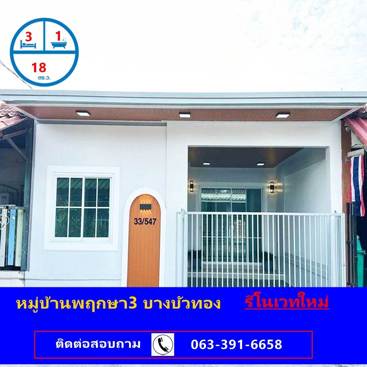 ขายทาวน์ฮ้าส์ชั้นเดียว เนื้อที่ 18 ตร.ว หมู่บ้านพฤกษา3 บางบัวทอง 3 นอน รีโนเวทใหม่ รายละเอียดฟังก์ชั่น เนื้อที่ 18 ตารงวา พื้นที่ใช้สอย : 90 ตารางเมตร ห้องนอน :3 ห้อง ห้องน้ำ 1 ห้อง ห้องครัว 1 ห้อง ที่จอดรถ : 1 ทิศ : ตะวันตก จุดเด่น : ***รีโนเวทใหม่ทั้งหลัง*** - ทำสีใหม่ทั้งภายในและภายนอก - กระเบื้อง+ทำเค้าท์เตอร์ครัว - ต่อเติมหลังคาหน้าบ้าน - เปลี่ยนพื้นแกรนิตโต้ใหม่ทั้งหลัง - เปลี่ยนสุขภัณฑ์ใหม่ เฟอร์นิเจอร์ : -ตกแต่งแล้วบางส่วน สิ่งอำนวยความสะดวก : รักษาความปลอดภัย 24 ชม, สนามเด็กเล่น, สวนสาธารณะ/สวนหย่อม ทำเลดี สถานที่ใกล้เคียง : -รถไฟฟ้าสายสีม่วง สถานีคลองบางไผ่ -Max Value -บิ๊กซี -เซ็นทรัล เวสต์เกท โครงการ : บ้านพฤกษา 3 บางบัวทอง ที่ตั้ง : เลขที่ 33/547(ซ.161) ตำบลบางคูรัด อำเภอบางบัวทอง จังหวัดนนทบุรี 11110 พิกัด : https://maps.app.goo.gl/3A46ETpWcP5u5nzd6 ราคา 1,350,000บาท สนใจติดต่อสอบถามนัดชมบ้านติดต่อ คุณแอ้ม เบอร์โทร คลิกเพื่อดูเบอร์โทรติดต่อ เพิ่ม ID Line กด คลิกเพื่อดูเบอร์โทรติดต่อ #ทาวน์เฮ้าส์2ชั้นบ้านบัวทอง #บ้านบัวทอง #ฝากขายบ้าน #ฝากขายที่ดิน #รับฝากขายบ้าน #นายหน้าขายบ้าน #บ้านมือสอง #ขายบ้านพร้อมอยู่ #ทาวน์เฮ้าส์สองชั้น#ขายบ้านมือสอง #บ้านมือสองราคาถูก