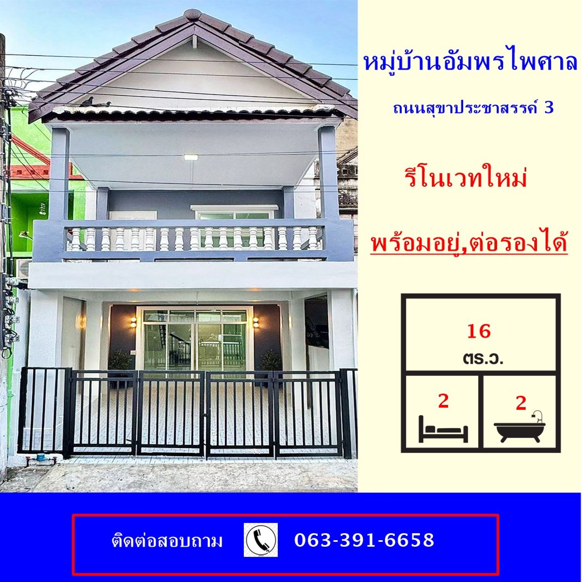 ขายทาวน์เฮ้าส์2 ชั้น เนื้อที่ 16 ตร.ว หมู่บ้านอัมพรไพศาล ถนนสุขาประชาสรรค์ 3 รีโนเวทใหม่ รายละเอียดฟังก์ชั่น บ้านทาวน์เฮ้าส์ 2 ชั้น เนี้อที่ 16 ตารางวา พื้นที่ใช้สอย100 ตารางเมตร 2ห้องนอน 2ห้องน้ำ 1ห้องครัว 1 ที่จอดรถ หน้าบ้านหันทิศใต้ **รีโนเวทใหม่** -ต่อเติมครัวบิลท์อิน -พื้นปูกระเบื้องทั้งหมด -เครื่องสุขภัณฑ์ครบ -ทําหลังคาใหม่ จุดเด่น >รีโนเวทใหม่ >เข้าออกซอยวัดกู้ได้ > การเดินทาง : - ทางด่วนศรีสมาน - รถไฟฟ้าสายสีชมพู สถานี แยกปากเกร็ด สถานที่ใกล้เคียง : - โรงพยาบาลวิภารามปากเกร็ด - โรงพยาบาลกรุงไทย ปากเกร็ด - โรงเรียนอัมพรไพศาล - โรงเรียนสวนกุหลาบวิทยาลัย นนทบุรี - โลตัส ติวานนท์ (ปากเกร็ด) - เมกาโฮม ติวานนท์ - บิ๊กซี เอ็กซ์ตร้า แจ้งวัฒนะ 2 (ปากเกร็ด) - คอสโม บาซาร์ - อิมแพ็ค เมืองทองธานี - เมืองทองธานี - ตลาดปากเกร็ด - ตลาดร่มไทร ปากเกร็ด-ติวานนท์ - สำนักงานที่ดินปากเกร็ด ชื่อโครงการ : หมู่บ้านอัมพรไพศาล ที่ตั้ง: หมู่บ้าน อัมพรไพศาล ซอย 13 ต.บางพูด อ.ปากเกร็ด นนทบุรี 11120 พิกัด : https://maps.app.goo.gl/U2by38mWawTaSHvz5 ราคา 1,890,000 บาท สนใจติดต่อสอบถามนัดชมบ้านติดต่อ คุณแอ้ม เบอร์โทร คลิกเพื่อดูเบอร์โทรติดต่อ เพิ่ม ID Line กด คลิกเพื่อดูเบอร์โทรติดต่อ