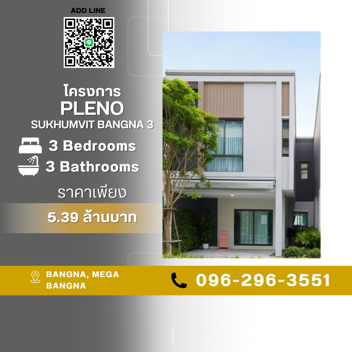 🏡 พลีโน่ สุขุมวิท–บางนา 3 – ทาวน์โฮม 3 ห้องนอน พื้นที่กว้าง 📐 ขนาด 125 ตร.ม. | 🛏️ 3 ห้องนอน | 🛁 3 ห้องน้ำ | 💰 ราคา 5.39 ล้านบาท 📍 ที่ตั้ง: โครงการ Pleno สุขุมวิท-บางนา 3, เขตบางนา, กรุงเทพฯ ทาวน์โฮม 2 ชั้น สไตล์โมเดิร์น พื้นที่ใช้สอยใหญ่ถึง 125 ตร.ม. เหมาะสำหรับครอบครัวที่ต้องการความเป็นส่วนตัวและพื้นที่ใช้สอยเพิ่มเติม ทำเลดี ใกล้ เมกาบางนา, Bangkok Mall, ทางด่วน และโรงเรียนนานาชาติ 🏠 รายละเอียดบ้าน 🏗️ บ้าน 2 ชั้น 🛏️ 3 ห้องนอน 🛁 3 ห้องน้ำ 🛋️ พื้นที่นั่งเล่นและรับประทานอาหาร 🍳 ครัวแยก 🚗 ที่จอดรถส่วนตัว 🌞 รับแสงธรรมชาติ โปร่ง โล่ง สบาย 🌟 สิ่งอำนวยความสะดวกในโครงการ 🏊♀️ คลับเฮาส์พร้อมสระว่ายน้ำ และฟิตเนส 🌳 สวนหย่อม สนามเด็กเล่น 🔐 ระบบรักษาความปลอดภัย 24 ชม. / CCTV / คีย์การ์ด 👨👩👧👦 เหมาะสำหรับครอบครัว 💵 ราคาขาย: 5,390,000 บาท 📞 สอบถามเพิ่มเติม / นัดชม 📱 โทร / ไลน์ / WhatsApp: คลิกเพื่อดูเบอร์โทรติดต่อ 💬 Line ID: @switchedon7 🔗 ลิงก์ไลน์: https://line.me/ti/p/IllNXQG3We