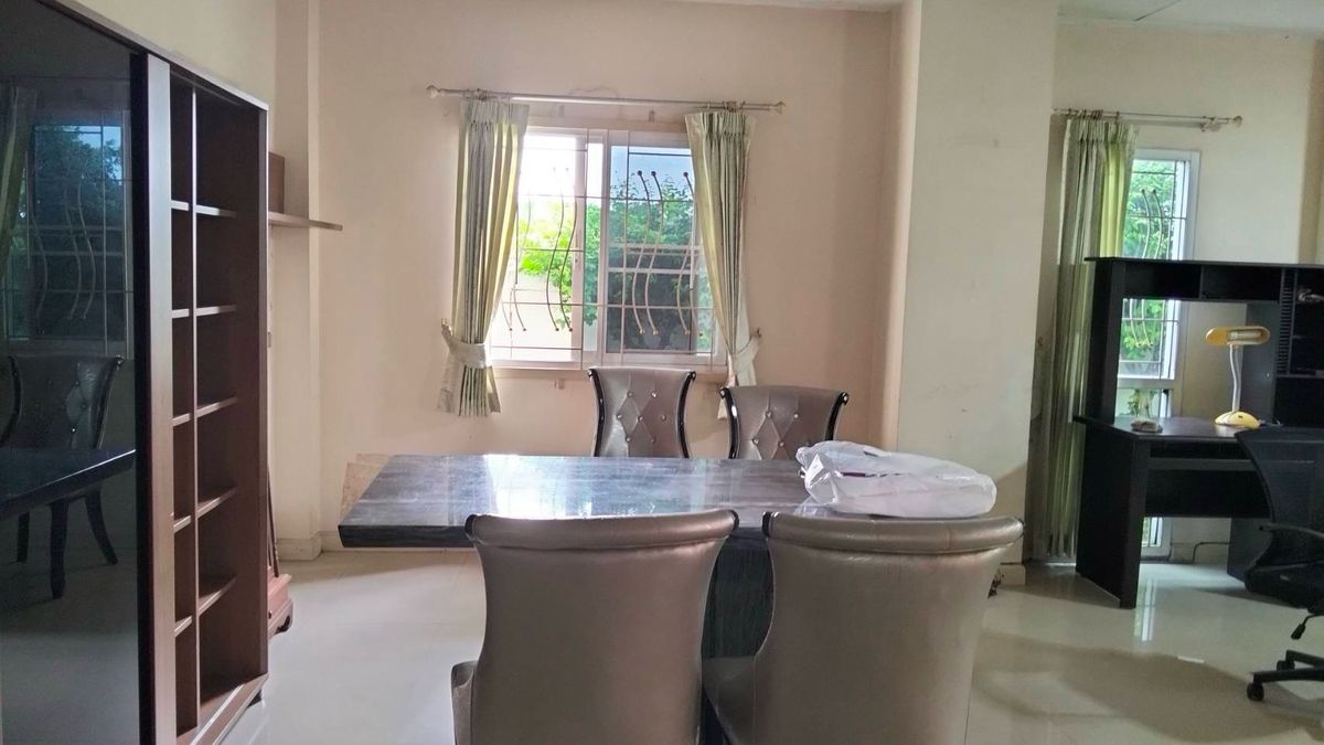 บ้านเดี่ยว 2 ชั้น 3 ห้องนอน 2 ห้องน้ำ แอร์ 3 ตัว ทีวี 1 เฟอร์นิเจอร์ เครื่องใช้ไฟฟ้า ตู้เย็น เครื่องซักผ้า ชุดเครื่องครัว พร้อมเข้าอยู่ได้เลย จอดรถในบ้าน 1 นอกรั้ว 1 เป็นหลังริมสุดท้าย บรรยากาศดี โทร