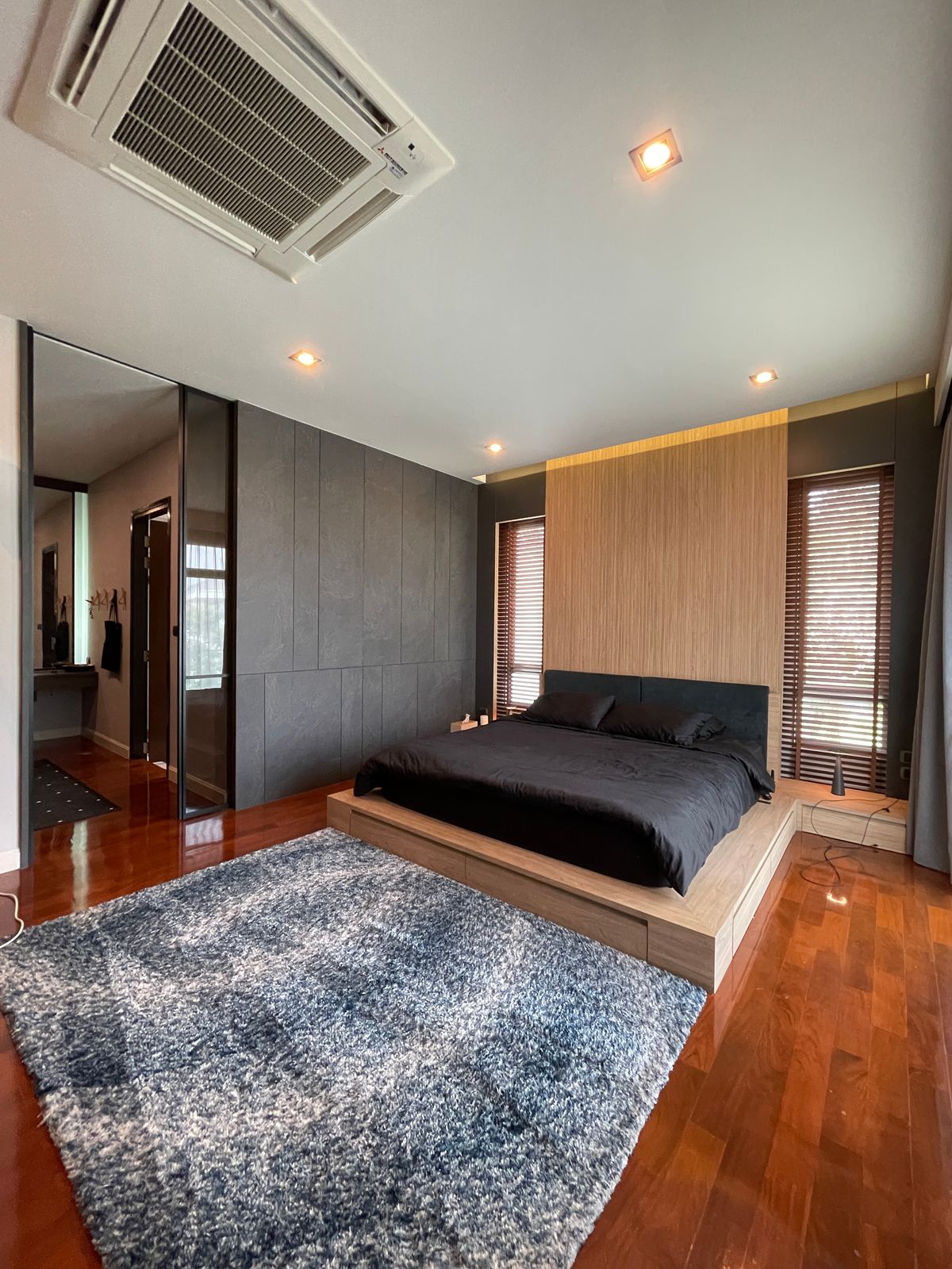 บ้านขนาด 112 ตรว. 2 ชั้น แปลงหัวมุม พื้นที่ใช้สอย 288 ตรม. ขนาด 4 ห้องนอน 5 ห้องน้ำ 1 ห้องคนรับใช้ จอดรถได้ 3 คัน สัญญาณกันขโมยทั้งหลัง พร้อมระบบ Air Flow ที่เมื่อกลับเข้าบ้านมาแล้วบ้านจะไม่รู้สึกอับชื้น ติดแอร์ทุกห้อง ทุกอย่างตกแต่งด้วยวัสดุเกรดพรีเมี่ยมทุกชิ้น ทุกมุมของบ้านรวมถึงฟังก์ชั่นการใช้สอยตอบโจทย์การพักผ่อนและการทำงาน work from home อย่างแท้จริง ต่อเติมครบ ✅ Buit-in ทั้งหลัง ✅ Walk-in Closet ✅ พื้นระแนงไม้ + สวนแนวตั้งหลังบ้าน ✅ ครัวไทยจัดเต็ม (เตา, ฮู้ด, ซิงค์, พัดลมดูดอากาศ) 💥แถมฟรี! แอร์ 6 ตัว, TV 4 ตัว, โซฟา Mobella Galleria, โต๊ะทานข้าวขนาด 6 ที่นั่ง, ตู้เย็น, เครื่องซักผ้า, ไมโครเวฟ, เครื่องทำน้ำร้อน–น้ำอุ่น, มุ้งลวด, ผ้าม่าน, ปั๊มน้ำ, แท็งค์น้ำ สิ่งอำนวยความสะดวกในโครงการ - ระบบรักษาความปลอดภัย 24 ชม., จนท.รปภ., กล้อง CCTV. - Master Club House, ฟิตเนส, ซาวน์น่า, สระว่ายน้ำ - สวนสาธารณะ, สนามเด็กเล่น สิ่งอำนวยความสะดวกรอบโครงการ - เทสโก้ โลตัส เอ็กซ์เพลส วัดไทรม้า - มินิบิ๊กซี วัดไทรม้า - 7-Eleven - แอทไทรม้า พาร์คอเวนิว - บิ๊กซี ฟู้ดเพลส ท่าอิฐ - ดีไซน์วิลเลจ ราชพฤกษ์ - สามเสนวิลล่า - โรงพยาบาลพระนั่งเกล้า - โรงเรียนอนุบาลมณียา - โรงเรียนศรีบุณยานนท์ - มทร.สุวรรณภูมิ ศูนย์นนทบุรี - รถไฟฟ้า MRT สถานีไทรม้า (0.4 กม.) MRT สถานีบางรักน้อย - ท่าอิฐ (0.9 กม.) MRT พระนั่งเกล้า (1.8 กม.)