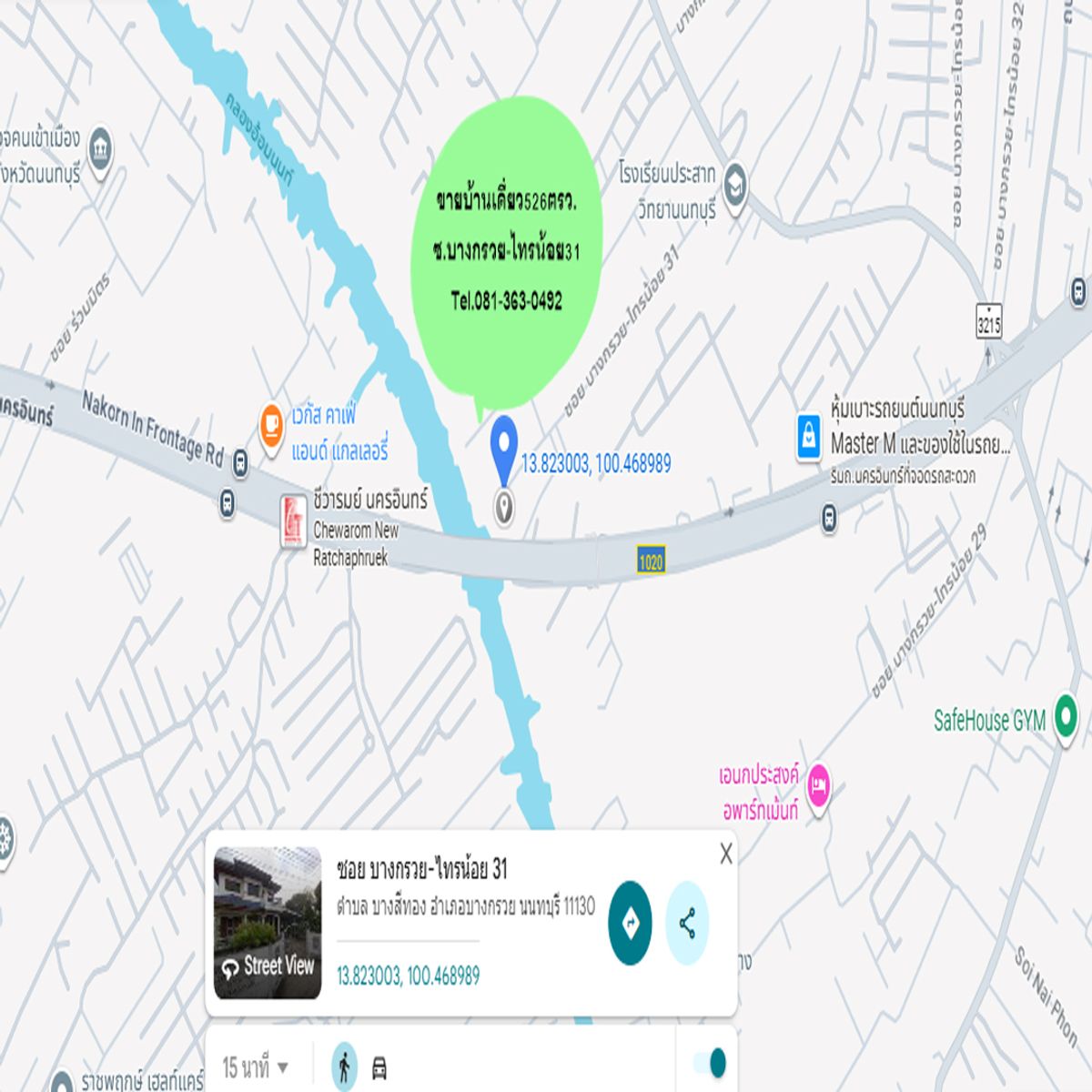ขายบ้านเดี่ยวพร้อมที่ดิน526ตรว. ซ.บางกรวย-ไทรน้อย31 สวยพร้อมอยู่ ทำเลดี ราคาพร้อมคุย . บ้านเดี่ยว 2 ชั้น+ที่ดิน เนื้อที่ 526 ตารางวา พื้นที่ใช้สอย 200 ตารางเมตร 4ห้องนอน 2ห้องน้ำ 2ห้องครัว 1ห้องรับแขก 1ห้องซักล้าง 3ที่จอดรถ - แถมแอร์ 5 ตัว , ปั๊มน้ำ , แท็งก์น้ำ , ผ้าม่าน , เหล็กดัด - ต่อเติมหลังคาหน้าบ้าน - ต่อเติมโรงจอดรถ - ต่อเติมครัวบิ้วท์อิน - วัสดุปูพื้น : ชั้นล่าง – กระเบื้อง / ชั้นบน – ปาเก้ - หน้าบ้านหันทิศตะวันตกเฉียงเหนือ . ที่ตั้งทรัพย์สิน : บ้านเดี่ยวพร้อมที่ดิน ซ.บางกรวย-ไทรน้อย31 ต.บางสีทอง อ.บางกรวย จ.นนทบุรี พิกัด : https://maps.app.goo.gl/BTZNZ6a1mesZyn1U6 การเดินทาง เริ่มจากถนนนครอินทร์ฝั่งที่มุ่งหน้าสู่สะพานพระราม5 > ตัดถนนบางกรวย-ไทรน้อย ให้เลี้ยวซ้ายมาทางท่าน้ำนนท์ > ถึงโรงเรียนประสาทวิทยานนทบุรี เลี้ยวซ้ายเข้าซอยบางกรวย-ไทรน้อย31 มา 400 ม. ทรัพย์อยู่ทางซ้ายมือ . ราคาขาย 39,900,000 บาท . จุดเด่น - บ้านสวย สภาพดีพร้อมอยู่ มีพื้นที่ว่างเหลือเยอะ สามารถจัดสวนหรือต่อเติมเพิ่มได้ - ห่างจากถนนนครอินทร์ และสะพานพระราม5 เพียง 800 เมตร - ราคาต่อรองได้ - บริการจัดสินเชื่อฟรีโดยมืออาชีพ . สถานที่ใกล้เคียง - Tesco Lotus นครอินทร์ - Makro นครอินทร์ - ท่าน้ำพระราม5 - Big C ติวานนท์ . สนใจติดต่อ คุณโต เบอร์โทรศัพท์ ศูนย์แปดหนึ่ง-363-0492 / ศูนย์แปดสาม-541-8007 / ศูนย์สอง-101-2393