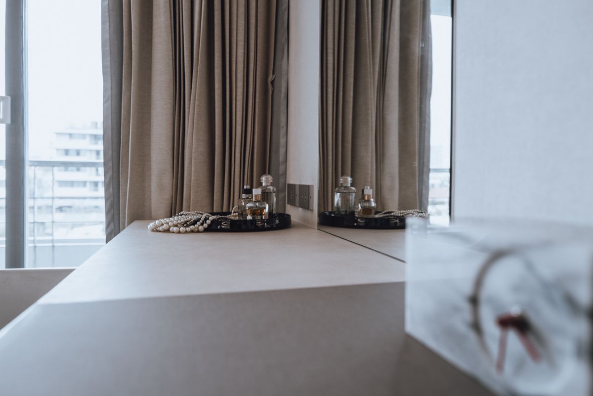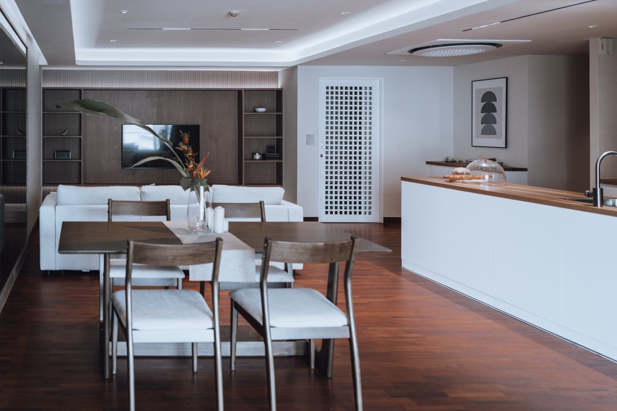 ยูนิตแบบสองห้องนอน สองห้องน้ำ ขนาด 160 ตร.ม. แห่งนี้ มอบพื้นที่อยู่อาศัยที่กว้างขวาง ออกแบบให้ตอบโจทย์ทั้งความสะดวกสบายและการใช้งาน พื้นที่ภายในประกอบด้วยห้องนั่งเล่นและห้องรับประทานอาหารขนาดใหญ่ ครัว