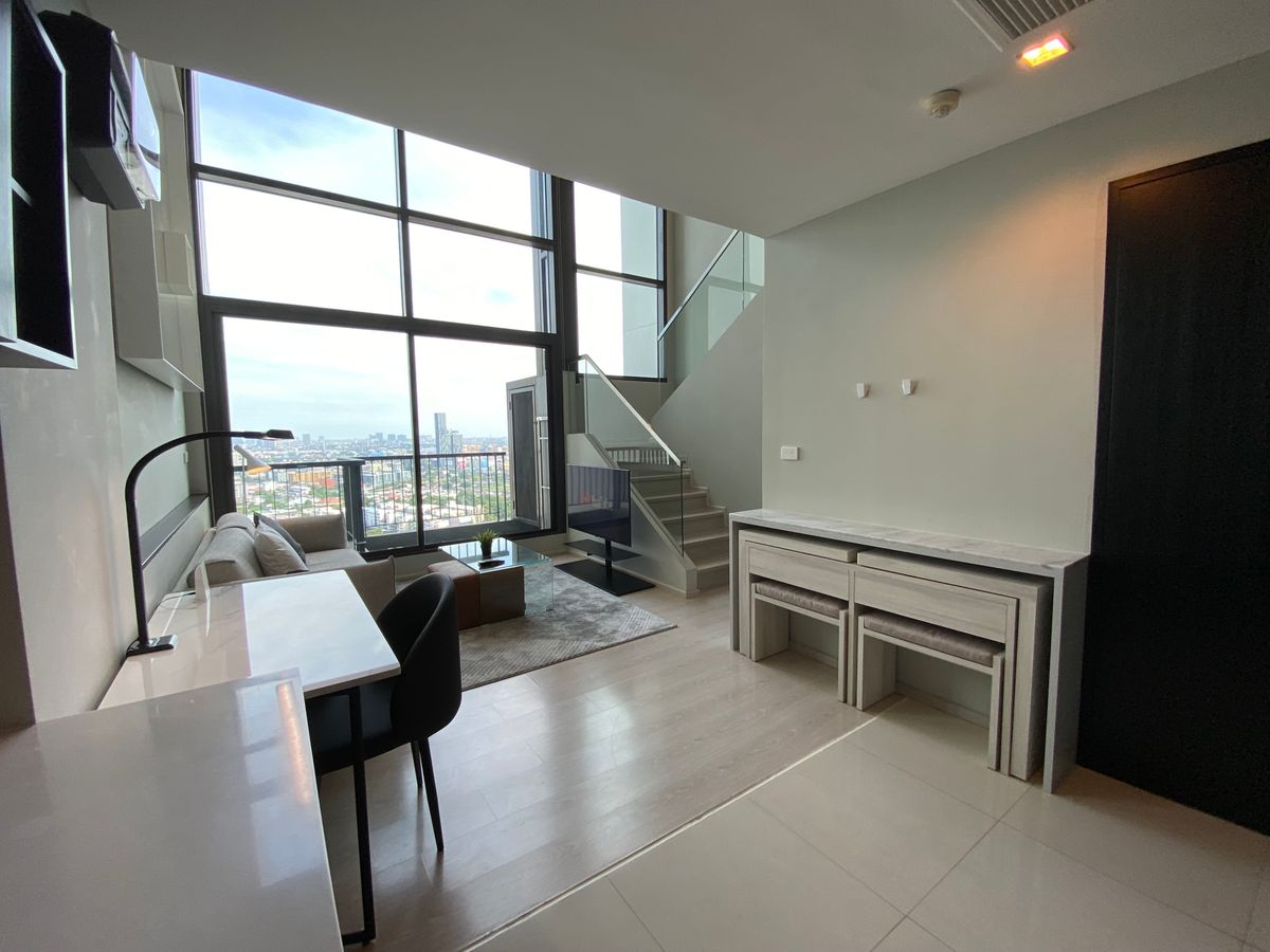 RHYTHM Sukhumvit 44/1 ห้อง Duplex 1ห้องนอน, 1ห้องน้ำ ชั้น 28 ขนาด 60.03 ตร.ม. 36,000 บาท/เดือน ห้องตกแต่งพร้อมอยู่ เฟอร์นิเจอร์และเครื่องใช้ไฟฟ้า 📍สถานที่ใกล้เคียง - ติด รถไฟฟ้า BTS พระโขนง - ใกล้ทางด