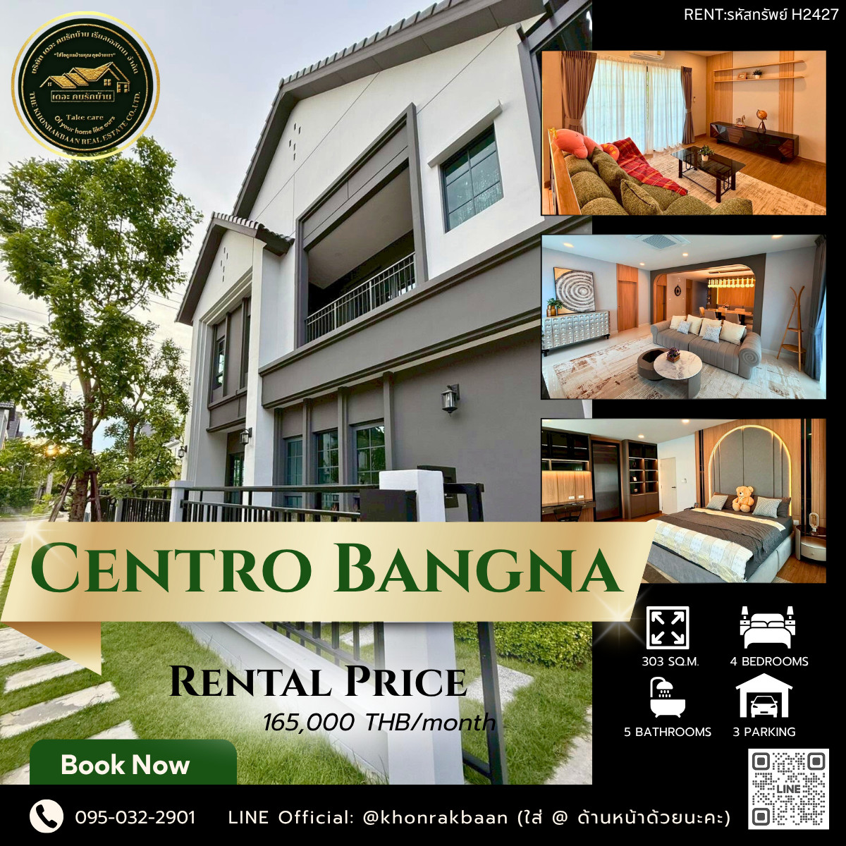RENT: รหัสทรัพย์ H2427✨ บ้านหรูให้เช่า Centro Bangna ✨ใกล้เมกะบางนา ค่าเช่า: 165,000 บาท/เดือน🏠 บ้านหัวมุม หันหน้าทิศใต้ ลมดี ไม่ร้อน ไม่มีเสาไฟฟ้าบัง 📍 ทำเล: ใกล้เมกะบางนา (เลี้ยวเข้าใต้ทางด่วน) 📐 ขนาดที่ดิน: 65 ตร.วา | พื้นที่ใช้สอย: 303 ตร.ม. 🏠 บ้านหัวมุม หันหน้าทิศใต้ ลมดี ไม่ร้อน ไม่มีเสาไฟฟ้าบัง 🛋 ตกแต่งใหม่ พร้อมเฟอร์นิเจอร์นำเข้าหรูหรา (ของใหม่) 🛏 รายละเอียดห้อง 4 ห้องนอน 5 ห้องน้ำ 1 ห้องนั่งเล่น 1 ห้องครัว 1 ห้องแม่บ้าน ที่จอดรถ 3 คัน ⚡ เครื่องใช้ไฟฟ้า & เฟอร์นิเจอร์ แอร์ 6 เครื่อง (ติดผนัง 5 + แอร์ 4 ทิศทาง 1) เครื่องซัก–อบผ้า ไมโครเวฟ เตาแก๊ส + เครื่องดูดควัน เครื่องทำน้ำอุ่น–น้ำร้อนครบทุกห้อง ตู้เย็นขนาดใหญ่ ทีวี 75" + 65" ผ้าม่านทั้งหลัง 🏢 สิ่งอำนวยความสะดวกโครงการ คลับเฮาส์หรู + สระว่ายน้ำระบบเกลือ 🏊♀️ ฟิตเนส + Co-Working Space 🏋️♂️💻 สนามเด็กเล่น + สวนส่วนกลาง 🌳 รปภ.24 ชม. + Keycard + CCTV 🔐 📍 สถานที่ใกล้เคียง Mega Bangna & IKEA ~3 กม. 🛍️ โรงเรียนนานาชาติ Concordian, Bangkok Patana 🎓 Central Bangna, Bitec Bangna, รพ.ไทยนครินทร์ 🏥 สนามบินสุวรรณภูมิ ✈️ / ทางด่วนบางนา–ตราด / มอเตอร์เวย์ 🚗 💰 เงื่อนไขการเช่า ค่าเช่า: 190,000 บาท/เดือน สัญญาขั้นต่ำ 1 ปี 🏡 For Rent: Luxury House – Centro Bangna (Code H2427) 📍 Location: Near Mega Bangna (under expressway entrance) 📐 Land: 65 sq.wah | Usable area: 303 sq.m. 🏠 Corner unit, south-facing, airy & cool, no electric poles in front 🛋 Newly renovated with brand-new imported luxury furniture 🛏 Rooms 4 Bedrooms | 5 Bathrooms 1 Living Room | 1 Kitchen 1 Maid’s Room | 3 Parking spaces ⚡ Appliances & Furnishings 6 Air-conditioners (5 wall-mounted + 1 ceiling cassette) Washer & Dryer Microwave Gas stove + hood Water heater in every bathroom Large refrigerator 75" & 65" TVs Curtains throughout 🏢 Facilities Luxury Clubhouse & Saltwater Swimming Pool 🏊♂️ Fitness Center & Co-Working Space 🏋️♀️💻 Playground & Green Park 🌳 24-Hour Security with CCTV & Keycard 🔐 📍 Nearby Places Mega Bangna & IKEA (~3 km) 🛍️ International Schools: Concordian, Bangkok Patana 🎓 Central Bangna, Bitec Bangna, Thai Nakarin Hospital 🏥 Suvarnabhumi Airport ✈️ / Bangna–Trat Expressway / Motorway 🚗 💰 Rental Condition Rent: 165,000 THB/month Minimum 1-year contract ---------------------------------------------------------- 🏢 The Khonrakbaan Real Estate Co., Ltd 📍บริการหลังการเช่าตลอดสัญญา | Full after-rent support throughout the lease ⚠️ ปล่อยเช่าราคาเจ้าของ | Rent at owner’s price ⚠️ 💁♀️ รับจัดหาออเดอร์ / รับฝากเช่า / ปล่อยเช่า | Property sourcing / consignment / leasing services 📅 นัดหมายล่วงหน้า 1 วัน | Appointment required 1 day in advance 👇 Contact BEE (Thai/Eng) 👇 📞 Tel: คลิกเพื่อดูเบอร์โทรติดต่อ 📱 WhatsApp: คลิกเพื่อดูเบอร์โทรติดต่อ 💬 LINE Official: @khonrakbaan (ใส่ @ ด้านหน้าด้วยนะคะ) ---------------------------------------------------------- 👇 ติดต่อ คุณพลอย 👇 📞 Tel: คลิกเพื่อดูเบอร์โทรติดต่อ , คลิกเพื่อดูเบอร์โทรติดต่อ 📱 Wechat: @thekhonrakbaan 💬 LINE Official: @thekhonrakbaan (ใส่ @ ด้านหน้าด้วยนะคะ) -------------------------------------------------