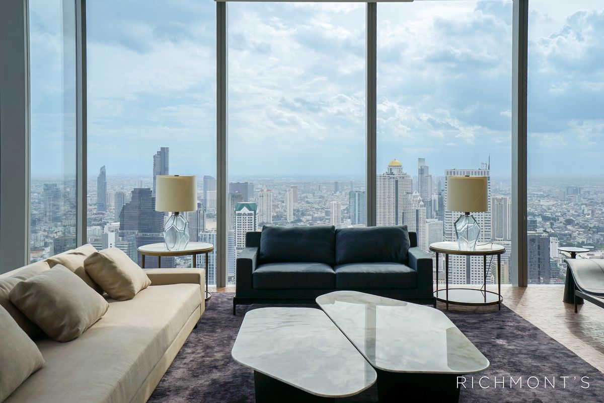 สูงเสียดฟ้าเหนือเส้นขอบฟ้าของกรุงเทพฯ บนชั้นสูง ของที่อยู่ระดับไอคอนของเมือง ห้องชุด Sky Residence แบบ 5 ห้องนอน 5 ห้องน้ำสุดพิเศษแห่งนี้ที่ The Ritz-Carlton Residences, Bangkok มอบประสบการณ์การอยู่อาศัยที่เหนือระดับ ด้วยพื้นที่ใช้สอยขนาด 476 ตารางเมตรที่ได้รับการออกแบบอย่างงดงาม โดดเด่นด้วยทัศนียภาพรอบด้าน พร้อมความเป็นส่วนตัว ความพิเศษ และความหรูหราระดับโลก หน้าต่างกระจกเต็มบานจากพื้นจรดเพดานเผยให้เห็นวิวพาโนรามาของเส้นขอบฟ้ากรุงเทพฯ แม่น้ำเจ้าพระยา และสวนลุมพินี ภายในตกแต่งในรูปแบบเปิด พร้อมระเบียงกลางแจ้งหลายจุด ห้องนั่งเล่น ห้องรับประทานอาหาร ห้องครัวแบบกูร์เมต์ และห้องนอนพร้อมห้องน้ำในตัวขนาดกว้างขวาง ทุกห้องออกแบบด้วยความประณีต พรั่งพร้อมด้วยวัสดุคุณภาพสูง เพดานสูง เพื่อมอบทั้งความสะดวกสบายและความหรูหราอย่างมีระดับ ห้องนอนหลักมาพร้อมกับห้องแต่งตัวแบบ Walk-in ขนาดใหญ่ ห้องน้ำหินอ่อนสไตล์สปา และวิวเมืองที่น่าหลงใหล เจ้าของห้องชุดจะได้ใช้บริการพิเศษของ The Residential Club Lounge พื้นที่พักผ่อนส่วนตัวที่หรูหราพร้อมวิวเมืองอันน่าทึ่ง รวมถึงสิ่งอำนวยความสะดวกระดับ 5 ดาว อาทิ ฟิตเนสทันสมัย สระว่ายน้ำ โรงภาพยนตร์ส่วนตัว และบริการคอนเซียร์จและรักษาความปลอดภัยตลอด 24 ชั่วโมง—บริหารจัดการภายใต้มาตรฐานอันเข้มงวดของ The Ritz-Carlton ตั้งอยู่ภายในอาคารแลนด์มาร์ค King Power Mahanakhon ใจกลางย่านธุรกิจของกรุงเทพฯ The Ritz-Carlton Residences, Bangkok ได้พลิกโฉมการใช้ชีวิตหรูหรา ด้วยการบริการในตำนาน สถาปัตยกรรมอันโดดเด่น และการเข้าถึงร้านอาหาร แหล่งช้อปปิ้ง และจุดหมายทางวัฒนธรรมชั้นนำของเมืองอย่างสะดวกสบาย