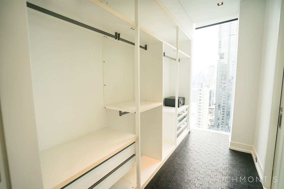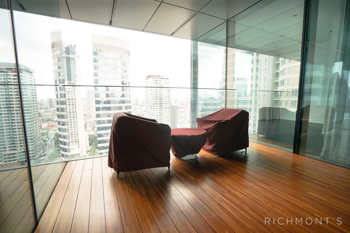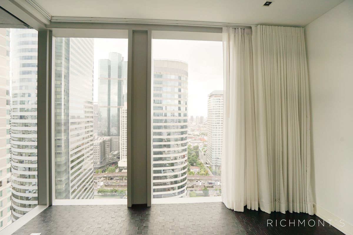 ห้องพักอาศัยแบบ 3 ห้องนอน พื้นที่ใช้สอย 211.66 ตารางเมตร ออกแบบและตกแต่งครบด้วยเฟอร์นิเจอร์คุณภาพจาก Olivia Living ภายในประกอบด้วยพื้นที่นั่งเล่นและรับประทานอาหารแบบเปิดโล่ง เชื่อมต่อกับระเบียงส่วนตัวที่สามารถมองเห็นวิวเมืองได้อย่างชัดเจน เหมาะสำหรับพักผ่อนหรือรับรองแขกอย่างมีสไตล์ พื้นไม้ปาร์เก้สีน้ำตาลเข้มและผนังกระจกสูงจากพื้นจรดเพดานช่วยเติมเต็มบรรยากาศหรูหราและอบอุ่นในทุกมุมของห้อง ตั้งอยู่ในย่าน สาทร ซึ่งเป็นศูนย์กลางธุรกิจและไลฟ์สไตล์ของกรุงเทพฯ ที่รายล้อมด้วยร้านอาหารชื่อดัง โรงแรมหรู และห้างสรรพสินค้าชั้นนำ ห้องนี้หันหน้าไปทางทิศตะวันตกและทิศใต้ เปิดรับวิวเมืองและแนวรถไฟฟ้าได้อย่างเต็มตา เหมาะอย่างยิ่งสำหรับผู้ที่มองหาความสงบส่วนตัวใจกลางเมือง พร้อมบรรยากาศที่สะท้อนความมีระดับในทุกวันของการใช้ชีวิต ลูกบ้านจะได้รับสิทธิ์การใช้บริการและสิ่งอำนวยความสะดวกระดับโรงแรม 5 ดาว ไม่ว่าจะเป็นบริการเจ้าหน้าที่คอนเซียร์จตลอด 24 ชั่วโมง บริการรับจอดรถ และพนักงานต้อนรับมืออาชีพ รวมถึงสิ่งอำนวยความสะดวกครบครัน เช่น สระว่ายน้ำ ฟิตเนส ซาวน่า พื้นที่เด็กเล่น และ เลานจ์ส่วนตัวบนชั้น 54 ที่เปิดมุมมองเมืองกรุงเทพฯ อย่างสวยงามเหนือระดับ