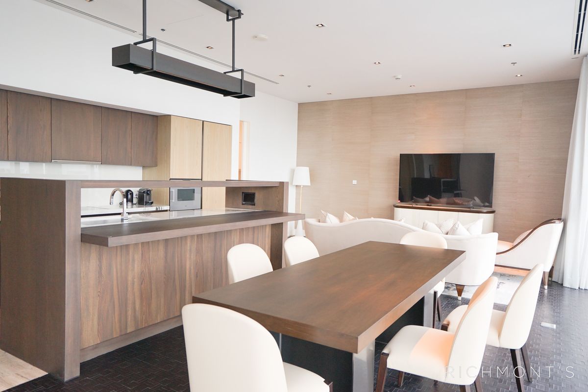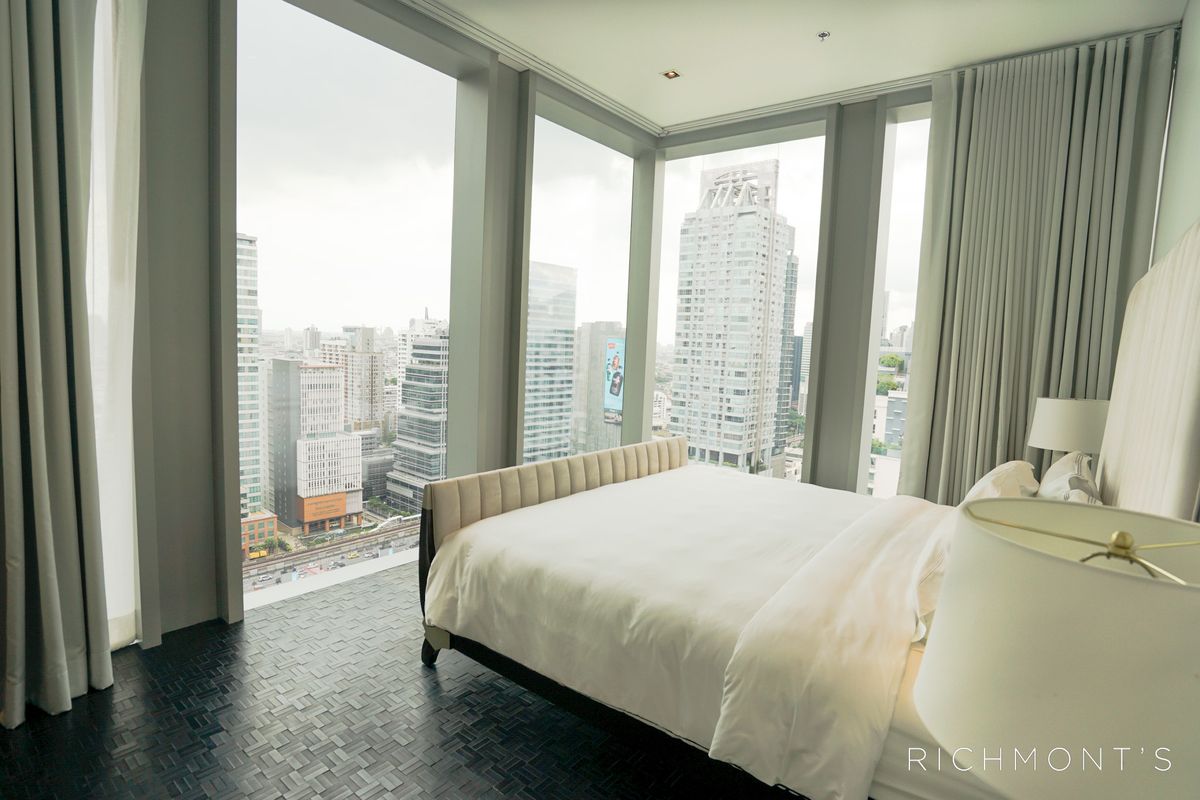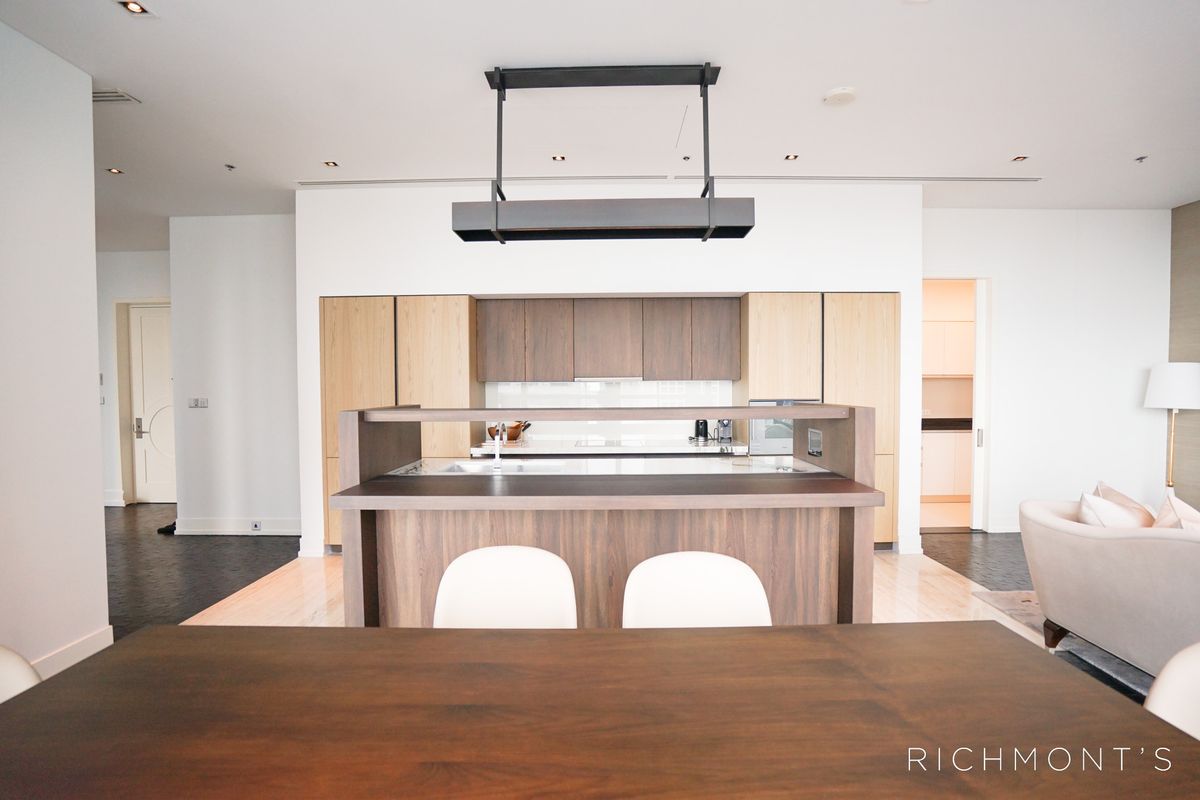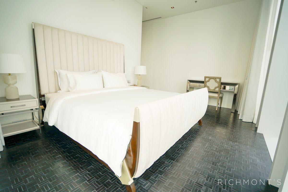ห้องพักอาศัยแบบ 3 ห้องนอน พื้นที่ใช้สอย 211.66 ตารางเมตร ออกแบบและตกแต่งครบด้วยเฟอร์นิเจอร์คุณภาพจาก Olivia Living ภายในประกอบด้วยพื้นที่นั่งเล่นและรับประทานอาหารแบบเปิดโล่ง เชื่อมต่อกับระเบียงส่วนตัวที่สามารถมองเห็นวิวเมืองได้อย่างชัดเจน เหมาะสำหรับพักผ่อนหรือรับรองแขกอย่างมีสไตล์ พื้นไม้ปาร์เก้สีน้ำตาลเข้มและผนังกระจกสูงจากพื้นจรดเพดานช่วยเติมเต็มบรรยากาศหรูหราและอบอุ่นในทุกมุมของห้อง ตั้งอยู่ในย่าน สาทร ซึ่งเป็นศูนย์กลางธุรกิจและไลฟ์สไตล์ของกรุงเทพฯ ที่รายล้อมด้วยร้านอาหารชื่อดัง โรงแรมหรู และห้างสรรพสินค้าชั้นนำ ห้องนี้หันหน้าไปทางทิศตะวันตกและทิศใต้ เปิดรับวิวเมืองและแนวรถไฟฟ้าได้อย่างเต็มตา เหมาะอย่างยิ่งสำหรับผู้ที่มองหาความสงบส่วนตัวใจกลางเมือง พร้อมบรรยากาศที่สะท้อนความมีระดับในทุกวันของการใช้ชีวิต ลูกบ้านจะได้รับสิทธิ์การใช้บริการและสิ่งอำนวยความสะดวกระดับโรงแรม 5 ดาว ไม่ว่าจะเป็นบริการเจ้าหน้าที่คอนเซียร์จตลอด 24 ชั่วโมง บริการรับจอดรถ และพนักงานต้อนรับมืออาชีพ รวมถึงสิ่งอำนวยความสะดวกครบครัน เช่น สระว่ายน้ำ ฟิตเนส ซาวน่า พื้นที่เด็กเล่น และ เลานจ์ส่วนตัวบนชั้น 54 ที่เปิดมุมมองเมืองกรุงเทพฯ อย่างสวยงามเหนือระดับ