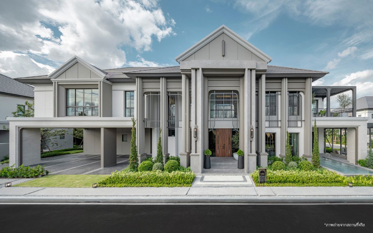 แกรนด์ บางกอก บูเลอวาร์ด ปิ่นเกล้า – กาญจนา บ้านแบบ MIRABELL บนที่ดิน 192 ตารางวา พื้นที่ 817 ตร.ม. 6 ห้องนอน 7 ห้องน้ำ 5 ที่จอดรถ ด้วยแนวคิด THE RHYME OF LIFE เหมือนทำนองบทกวี ที่ร้อยเล่าเรื่องราวสู่ความยิ่งใหญ่ของสถาปัตยกรรม ที่ได้แรงบันดาลใจจากความรัก สู่ความรู้สึกที่ได้เป็นที่รัก พบคฤหาสน์หรู สไตล์ CLASSIC LUXURY โครงการใหม่ตรงข้าม THE PASEO PARK ที่ได้รับแรงบันดาลใจจาก MIRABELL PALACE ประเทศออสเตรีย พระราชวังและสวนที่รายล้อมด้วยดอกไม้ และเสียงน้ำพุแห่งบทกวี ให้ทุกการอยู่อาศัยรายล้อมด้วยความรักและเรื่องราวการใช้ชีวิตที่อบอุ่น เอกสิทธิ์เพียง 52 ครอบครัว ตั้งอยู่บนทำเลศักยภาพ "ปิ่นเกล้า-กาญจนา" เชื่อมต่อ ถ.กาญจนาภิเษก ถ.บรมราชชนนนี ถ.พรานนก ถ.พุทธมณฑลสาย1 ตรงข้าม เดอะ พาซิโอ พาร์ค กาญจนาภิเษก รายล้อมด้วยโรงเรียนนานาชาติและโรงพยาบาลชั้นนำ