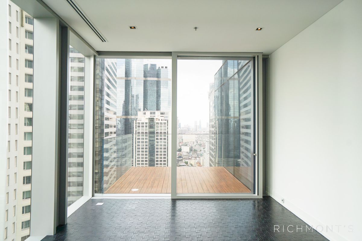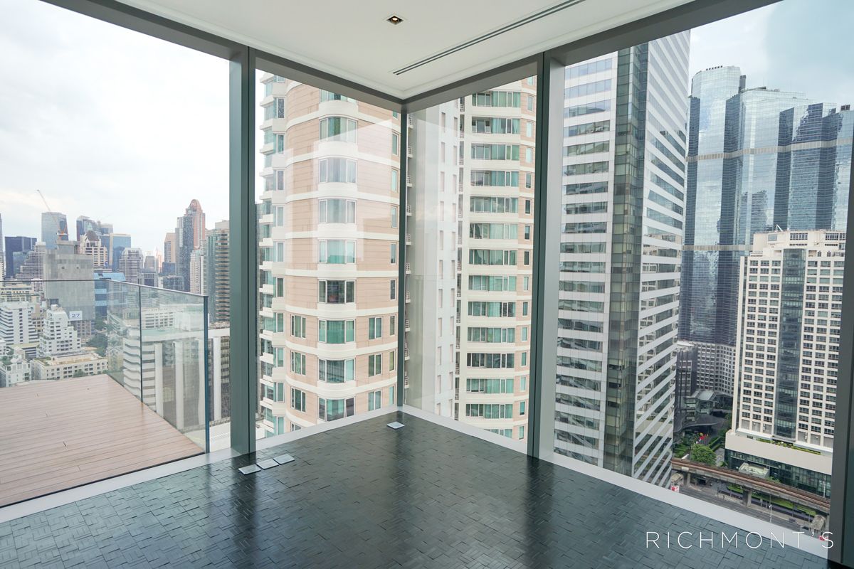 ห้องพักอาศัยสุดหรูขนาด 199.37 ตารางเมตร มาพร้อมการออกแบบพื้นที่ใช้สอยที่ลงตัวและการตกแต่งอย่างเหนือระดับ พื้นที่นั่งเล่นและรับประทานอาหารแบบเปิดโล่งเชื่อมต่อกับระเบียงส่วนตัวขนาดใหญ่ ซึ่งสามารถมองเห็นได้จากห้องนอนหลัก ช่วยให้พื้นที่ภายในและภายนอกกลมกลืนเป็นหนึ่งเดียว พื้นปาร์เกต์สีน้ำตาลเข้มเพิ่มความอบอุ่นและหรูหรา ขณะที่หน้าต่างกระจกสูงจากพื้นจรดเพดานเปิดรับแสงธรรมชาติและมอบวิวเมืองที่สวยงาม รวมถึงแนวรถไฟฟ้า BTS ด้านล่าง ดีไซน์ภายในเน้นความเรียบง่ายแต่หรูหรา ให้ความรู้สึกโปร่งสบาย เหมาะสำหรับการตกแต่งเพิ่มเติมตามสไตล์ส่วนตัว ห้องครัวและห้องน้ำตกแต่งด้วยวัสดุคุณภาพสูงและอุปกรณ์ครบครัน ผสานความทันสมัยและความประณีตได้อย่างสมบูรณ์แบบ ทุกองค์ประกอบสะท้อนถึงความพิถีพิถันในการออกแบบ เพื่อการใช้ชีวิตในเมืองอย่างมีรสนิยม ตั้งอยู่ในย่านสีลม–สาทร ซึ่งเป็นศูนย์กลางธุรกิจและไลฟ์สไตล์ของกรุงเทพฯ รายล้อมด้วยแหล่งช็อปปิ้ง ร้านอาหาร และสถานที่สำคัญต่าง ๆ ผู้อยู่อาศัยสามารถเพลิดเพลินกับสิ่งอำนวยความสะดวกระดับเวิลด์คลาส ไม่ว่าจะเป็นสระว่ายน้ำ ฟิตเนส ห้องซาวน่า พื้นที่เด็กเล่น และคลับเลาจน์ส่วนตัวบนชั้น 54 ที่สามารถชมวิวเมืองได้แบบพาโนรามา พร้อมบริการระดับโรงแรมจากเดอะ ริทซ์-คาร์ลตัน อาทิ คอนเซียร์จ 24 ชั่วโมง บริการจอดรถโดยพนักงาน และระบบรักษาความปลอดภัยครบวงจร