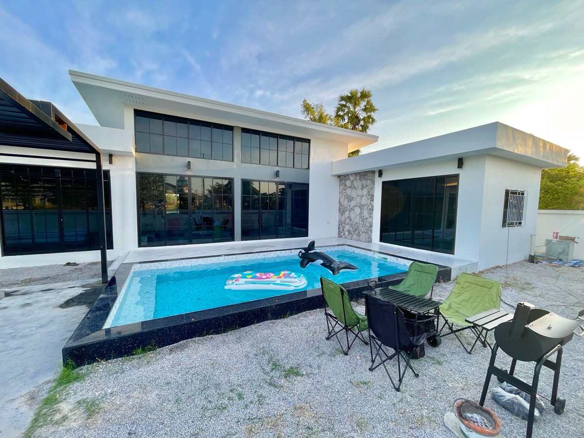 บ้านพูลวิลล่า ดีไซน์ สวย ทันสมัย ซื้อเพื่ออยู่อาศัย บ้านพักตากอากาศ หรือปล่อยเช่ารายวัน สร้างโดย วิศวกร มืออาชีพ และ สถาปนิก มืออาชีพ ทำเล หัวหิน พิพิธภัณฑ์ฝนหลวง ใหญ่ที่สุด ใน ประเทศไทย บรรยากาศดี ใกล้ หาดหัวหิน หาดชะอำ สถานที่ท่องเที่ยว วิวเขาแบล็คเมาท์เท็น พูลวิลล่าหรูชั้นเดียว บนที่ดิน 100 ตร.วา 3 ห้องนอน | 3 ห้องน้ำ | 4 ที่จอดรถ พื้นที่ใช่สอย 129 ตารางเมตร Master Bedroom พร้อมอ่างอาบน้ำสุดหรู Living & Dining Space + Pantry ฟังก์ชันครบครัน สัมผัสบรรยากาศโรแมนติก สระว่ายน้ำส่วนตัว 3.5 × 7 ม. ราคา จาก 6,000,000 ลดพิเศษ 1,800,000 เพียง 4,200,000 ฟรี ค่าส่วนกลางตลอดชีพ ติดต่อ คลิกเพื่อดูเบอร์โทรติดต่อ เปิดพรีเซลสุดเอ็กซ์คลูซีฟ! 6.XX ล้าน แต่งครบทั้งหลัง* จองตอนนี้! รับส่วนลดพิเศษ ก่อนบ้านเสร็จ รีบเลย! ซื้ออยู่เองก็ดี ปล่อยเช่าก็คุ้ม! เริ่มต้นเพียง 4,900 บาท/คืน -6900 Location: ต.หินเหล็กไฟ อ.หัวหิน จ.ประจวบฯ กรรมสิทธิ์ โฉนด